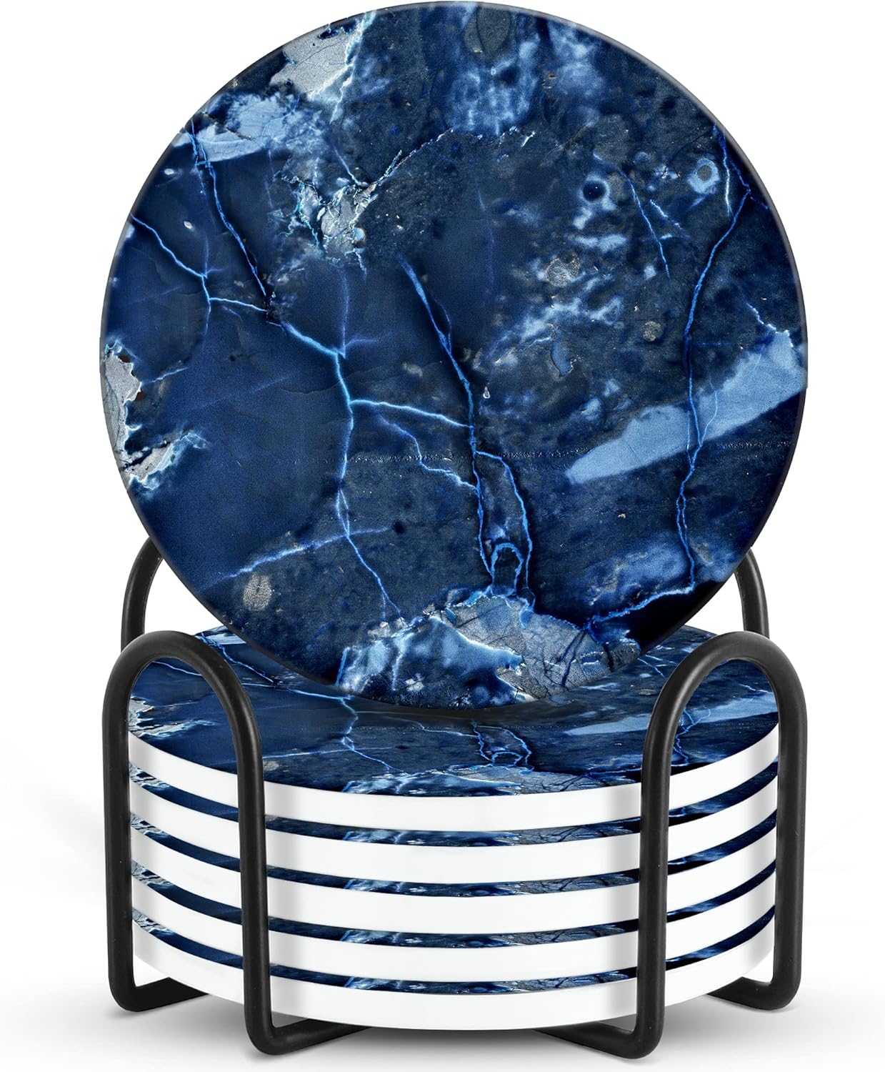 Emerson Coasters for Drinks Absorbent Set of 6 with Holder – Marble Style Coasters – Coasters for Drinks – Drink Coasters for Coffee Table – 100% Ceramic Stone Non Slip – Heavy Duty (Maze)