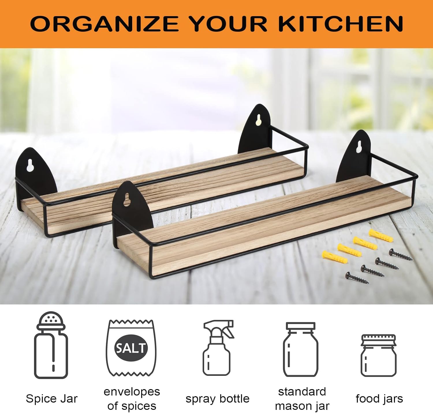 TJ.MOREE 2 Pack Spice Rack Wall Mount Rustic Style Hanging Spice Organizer for Wall, Kitchen Spice Storage