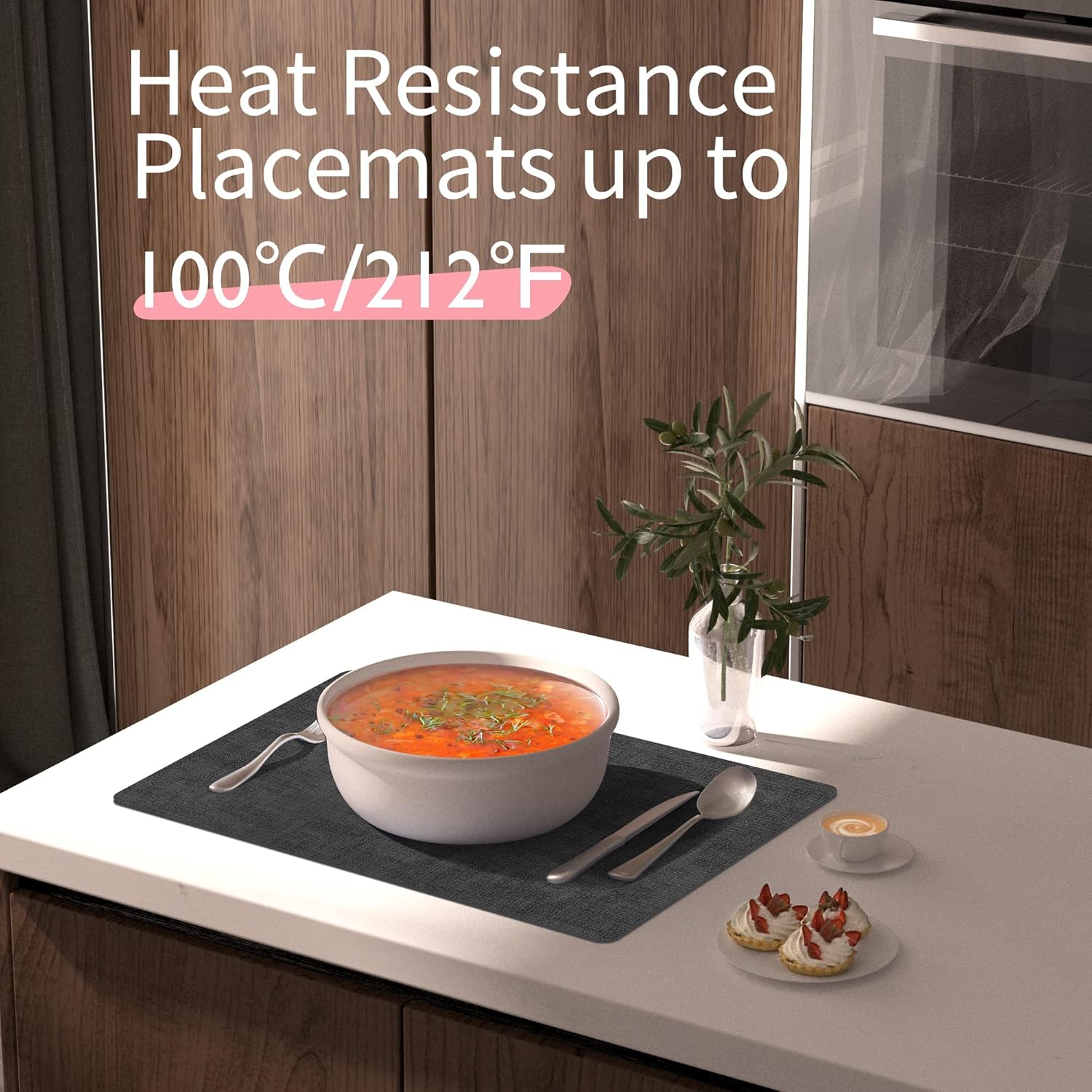 - EASY CARE: Designed for ease of use, these durable table mats withstand any spills and stains, making clean-up a breeze. Just with a simple wipe with a rag or a rinse under the tap, they'll be spotless and ready for your next meal