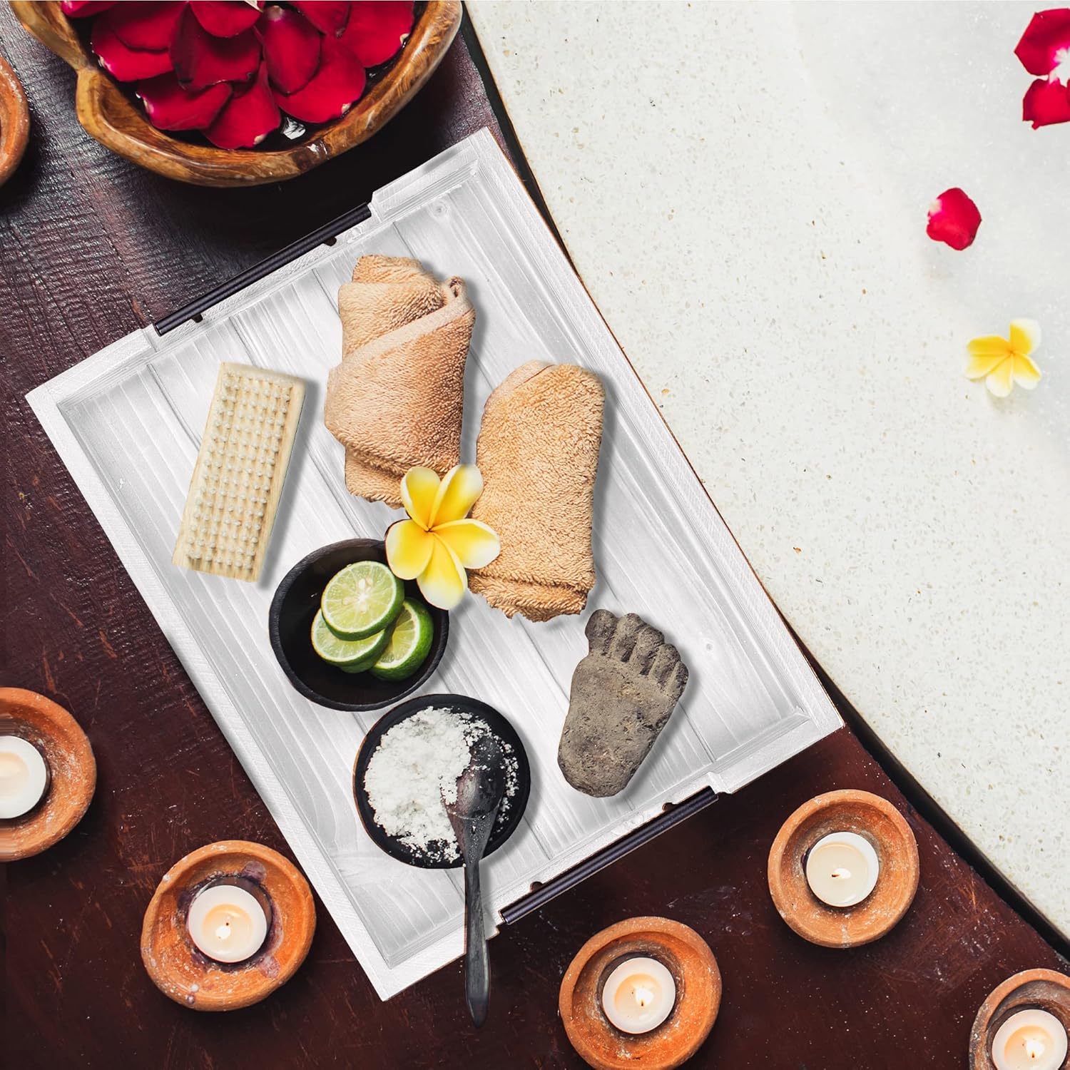 - PROMISE OF QUALITY β We provide a complete satisfaction guarantee on every purchase of our rustic wooden serving tray and round wooden coasters set as your happiness is of paramount importance to us. You can now have a hassle-free shopping experience with our ottoman tray (decorative) as we ensure strict compliance with stringent quality standards.