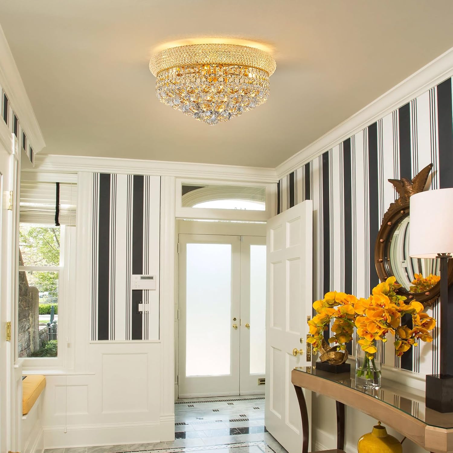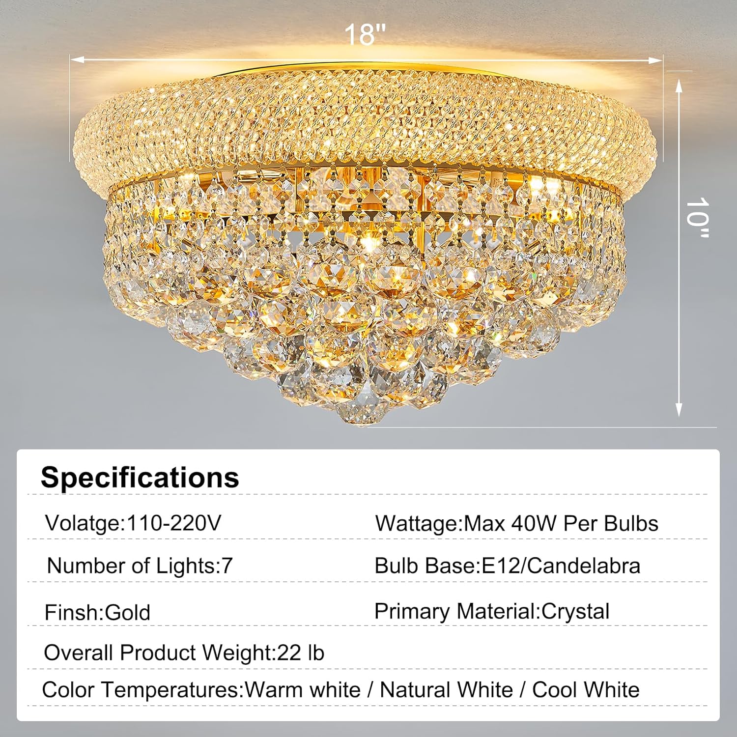 7-Light Crystal Flush Mount Chandelier Ceiling Light Fixture for Living Room Dining Room Bedroom Foyer Entryway Hallway Closet Bathroom (Gold D18)