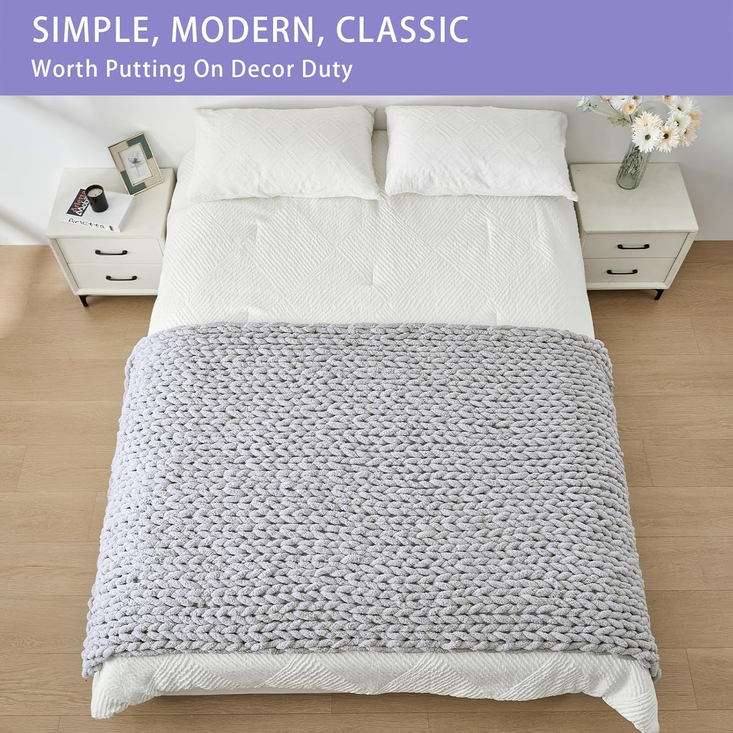 - No Shedding, No Stiffness, No Prickly: Our soft thick blankets and throws are knitted with premium chenille yarn to prevent shedding and stiffness, on chilly days, wrap you and your loved ones in the chunky blanket and enjoy this cuddly throw together