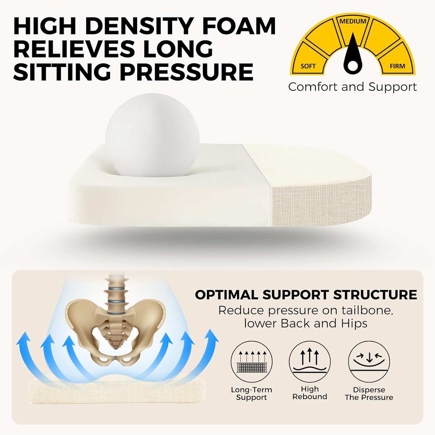 - Premium Materials: The cover of the chair pads is microfiber polyester that is soft, breathable and comfortable. And the filling is high-density foam which can offer additional support to your back and tailbone, easing achy muscles