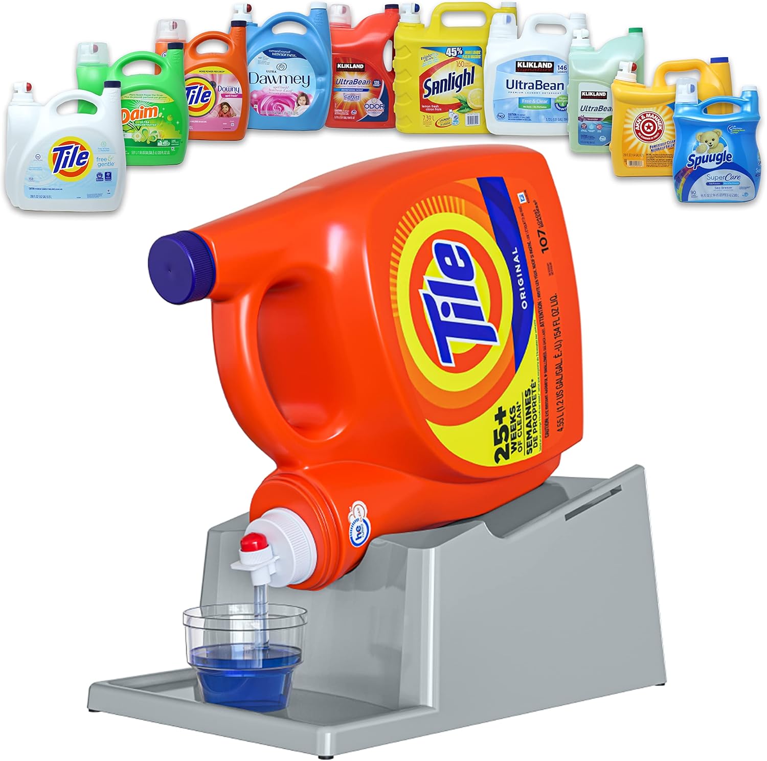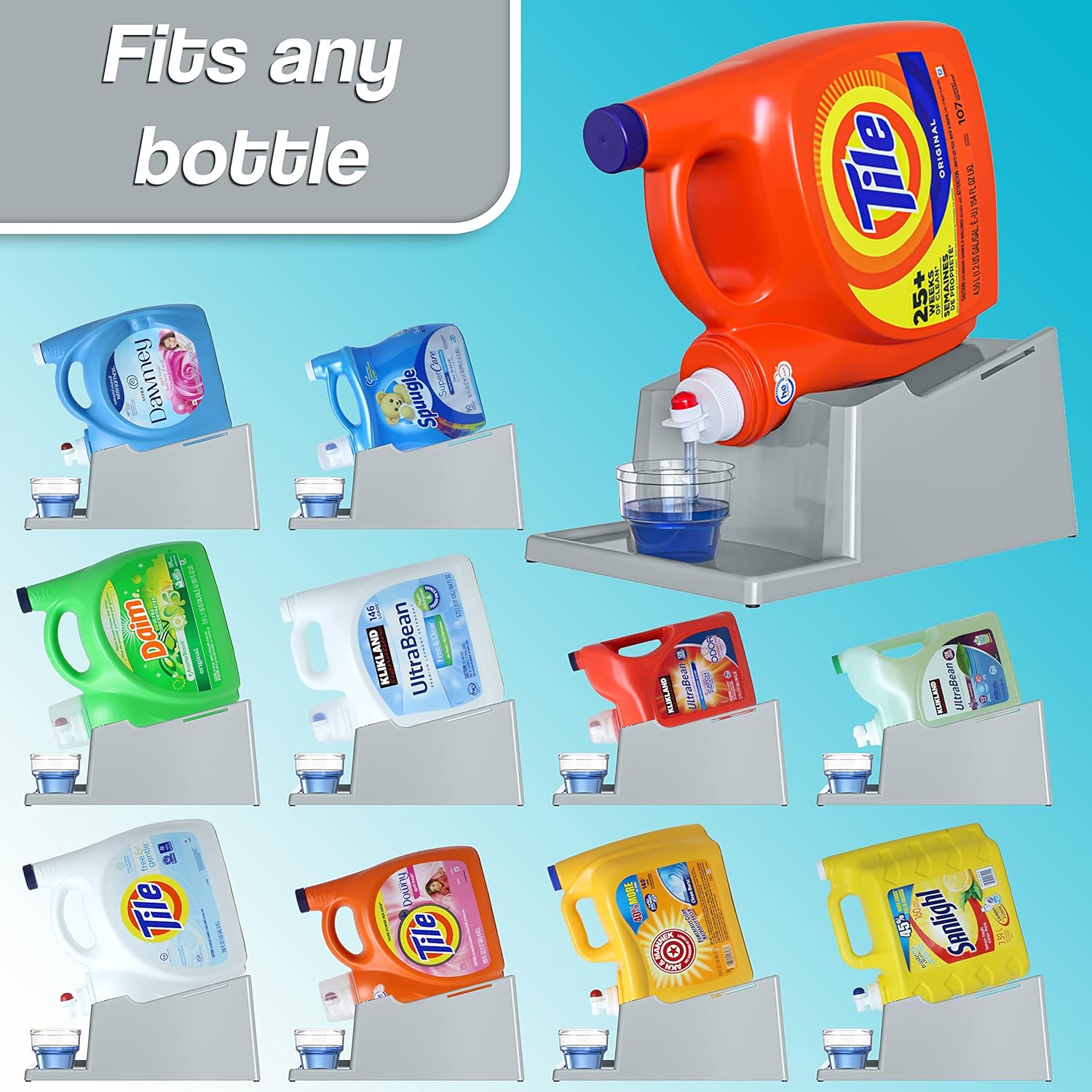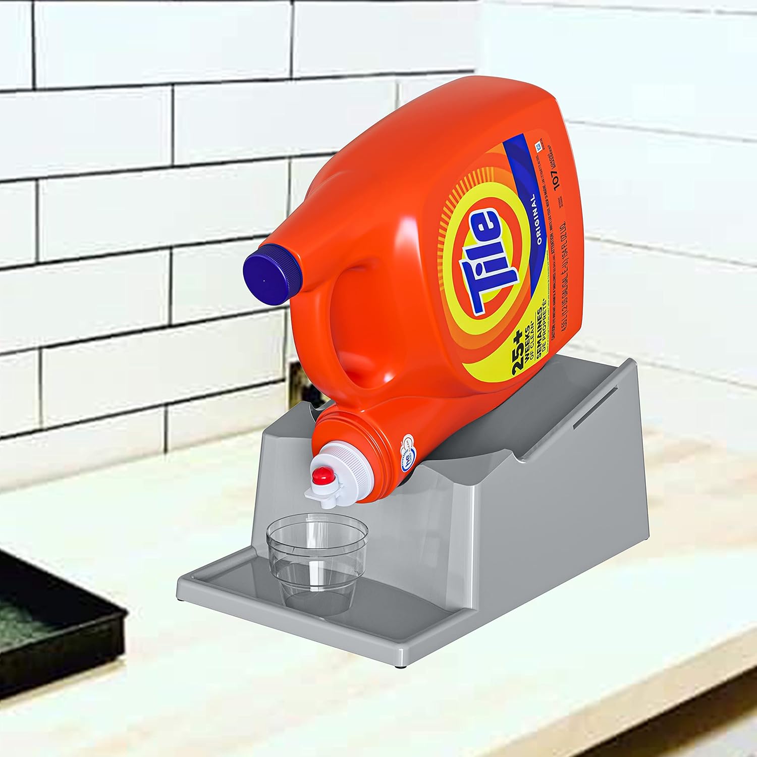 - [USES] - This Laundry Soap Detergent Holder will help you to pour out the detergent easier without using much effort to lift and carry the heavy containers of your favorite detergent or fabric conditioner. You can put this on top of your washing, or on your cabinets