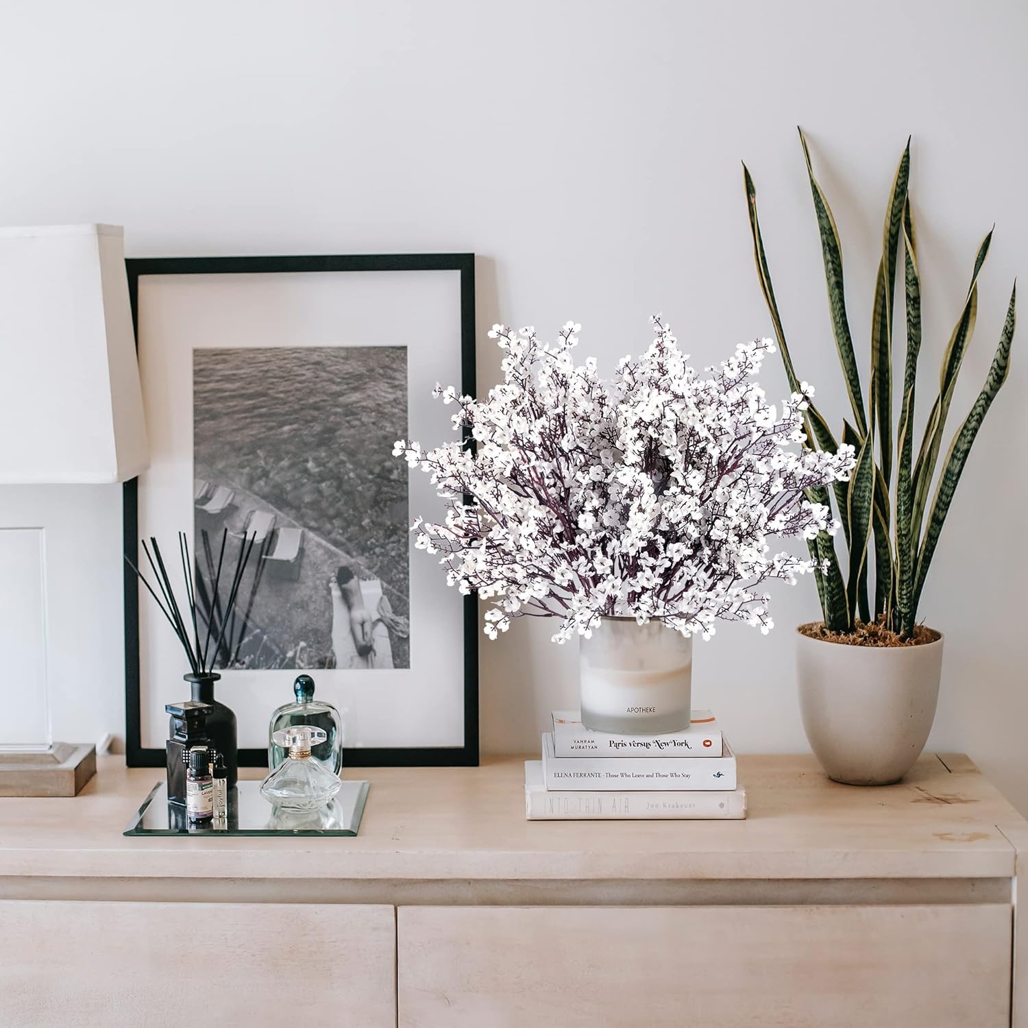 Sggvecsy 15 Pcs Babys Breath Artificial Flowers Gypsophila Bouquets Bulk Real Touch Fake Silk Flowers for Home Wedding DIY Floral Arrangement Kitchen Table Centerpiece Festival Decoration (White)