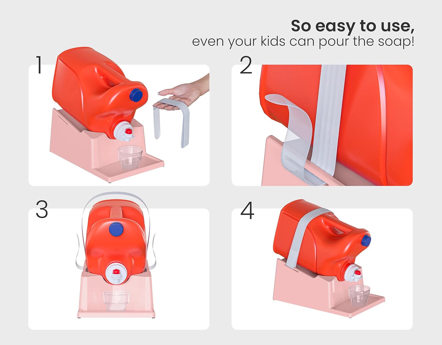 TidyFriend Liquid Laundry Detergent Holder Stand with Drip Tray & Rubber-Grip Feet, Stand for Laundry Room Organization and Storage, Fabric Softener Dispenser with Cup Holder for Easy Pouring (Rose)