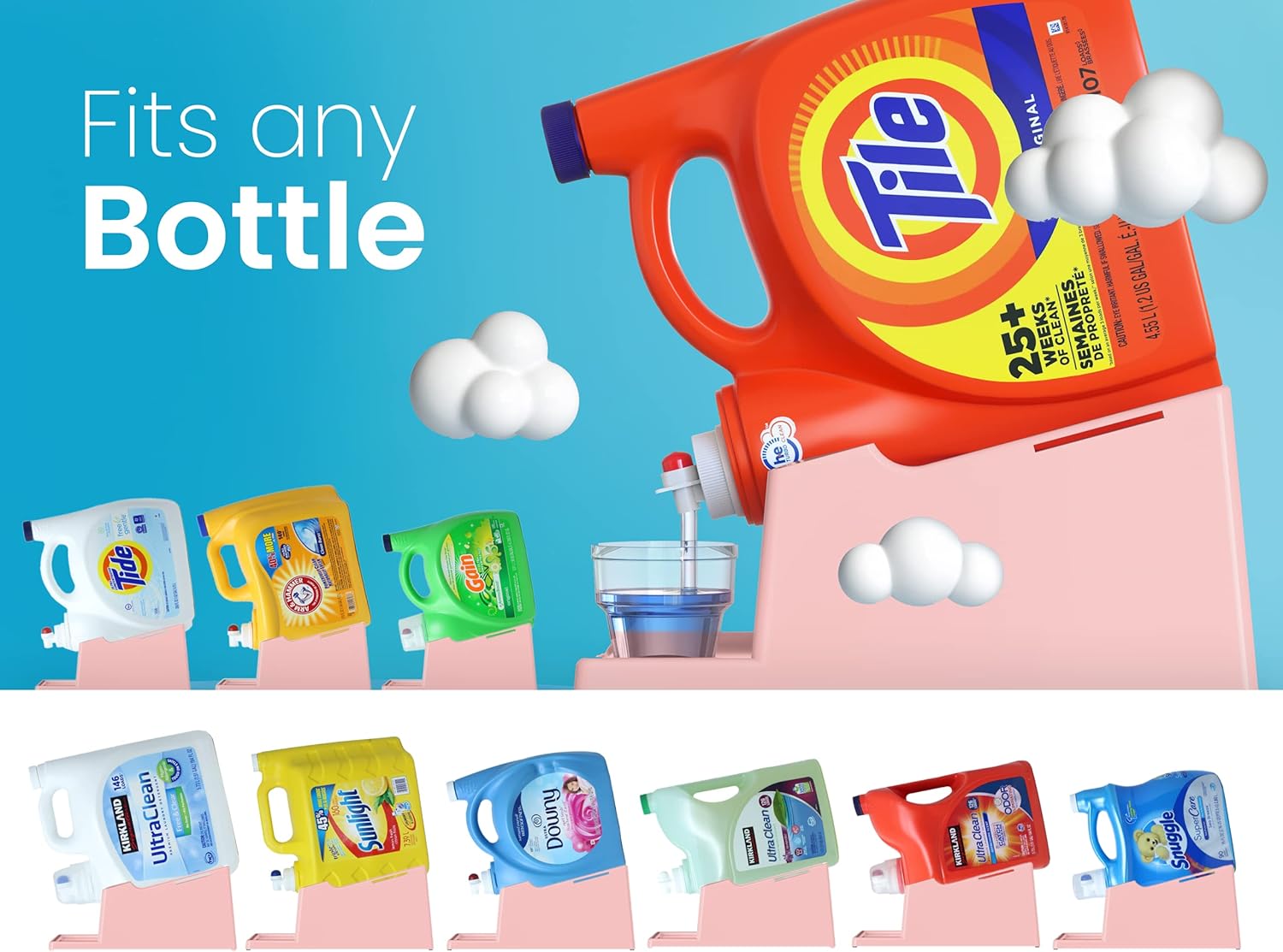 - [Versatile Fit]: The liquid laundry detergent holder station's optimal size (7.9"L x 12.2"W x 5.5"H) accommodates various bottle sizes, providing a perfect fit for most detergent containers without taking up too much space. (Laundry Soap, Cup, and Bottles NOT Included)