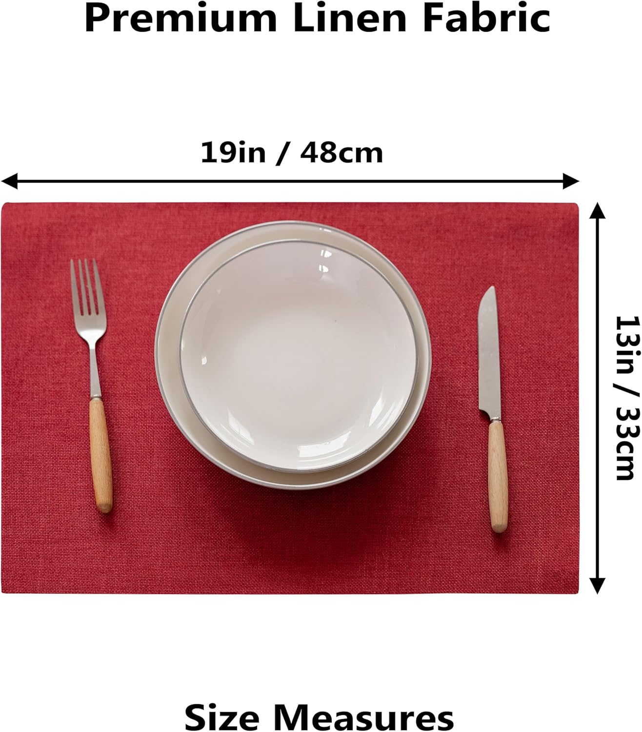 Demetex Christmas Placemats Set of 6 Red Linen Wipeable Place Mats Heat Resistant Cloth Placemats for Dining Table Restaurants Holiday, 13 x 19 inches, Wine Red