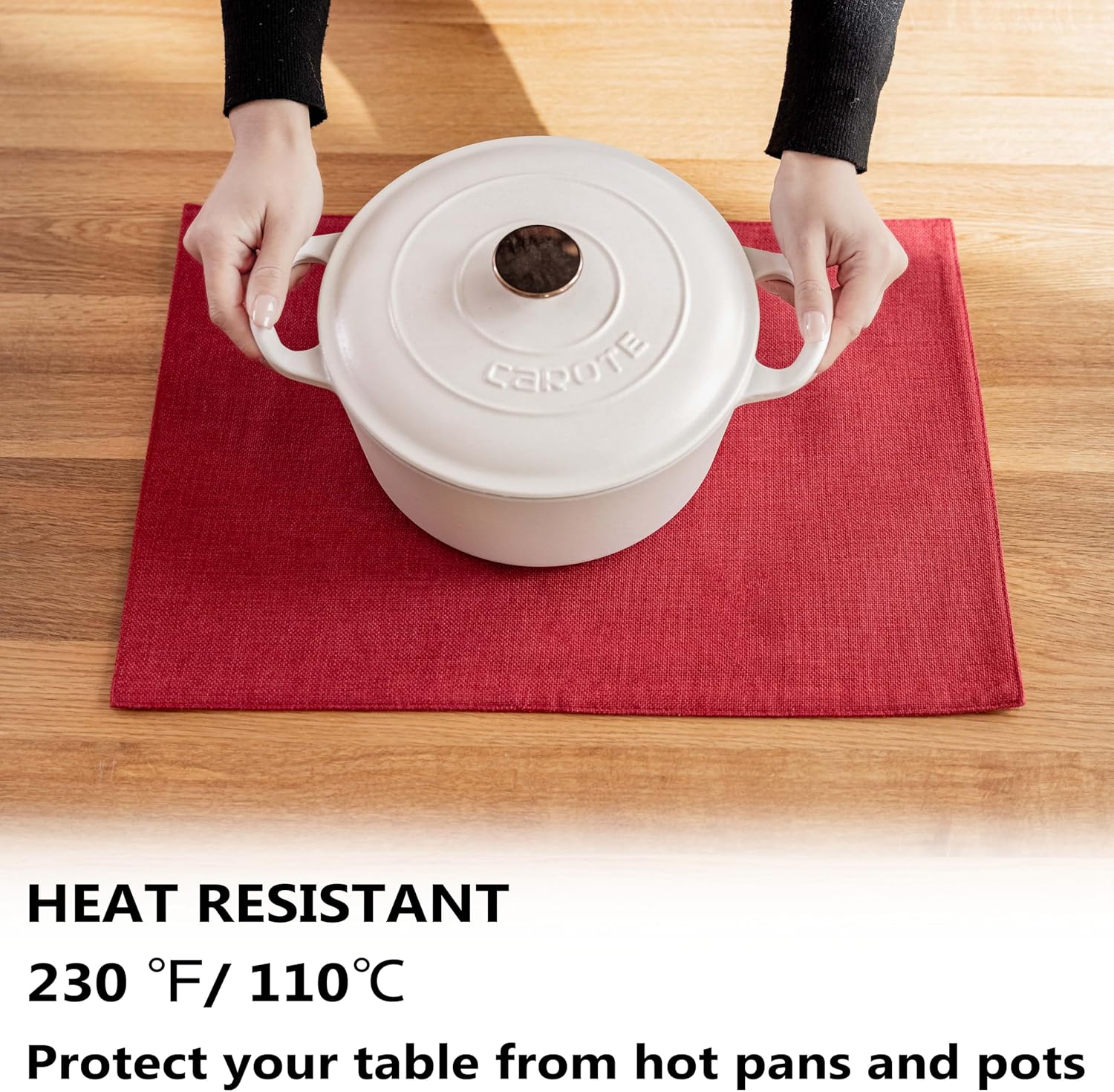 - Premium Fabrics: Our place mats are made of faux linen fabric, eco-friendly and durable placemats with exquisite workmanship which can be used for a long time. Not waterproof and liquid can go through placemats