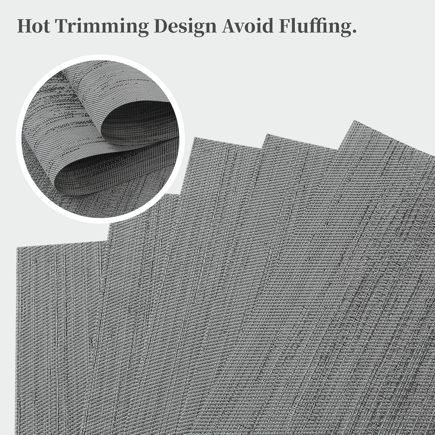 Leetaltree Grey Placemats, Heat Resistant Non-Slip Place mats for Dining Table, Washable Durable PVC Vinyl Woven Table Mats (Set of 4)