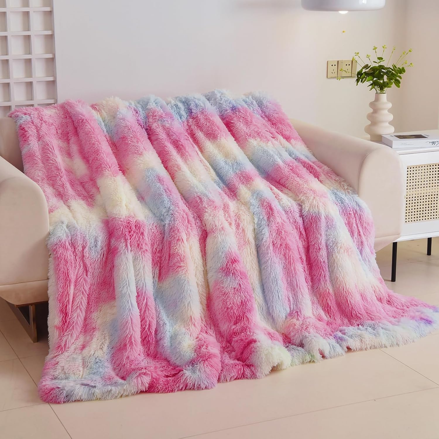 GONAAP Fuzzy Faux Fur Throw Blanket Queen Size Tie-dye Rainbow Super Soft Cozy Plush Fuzzy Shaggy Blanket for Couch Sofa Bed (Tie-dye Rainbow, Queen(90"x90"))
