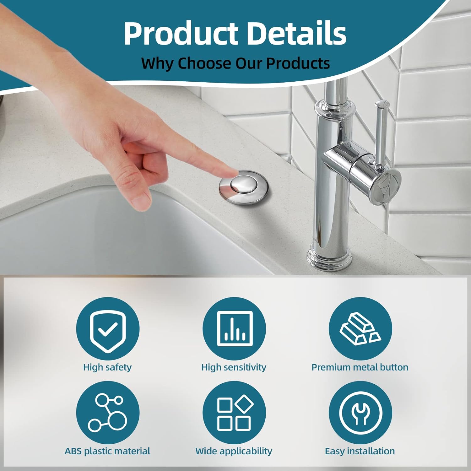 - 【Easy Installation】 Simply drill a hole between 1 1/4" and 1 4/6" in diameter in front of the sink and counter, and attach the switch button. You can easily do it yourself, saving your time and money!
