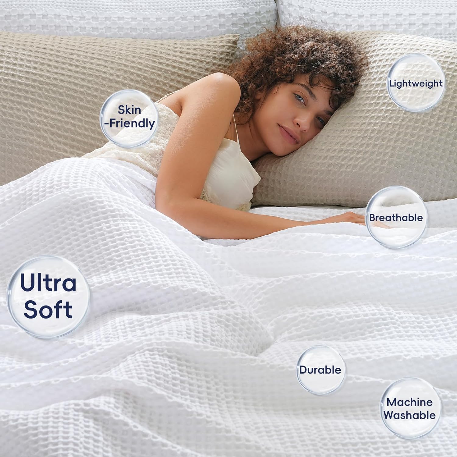 PHF Ultra Soft Waffle Weave Blanket Queen Size 90"x 90"- Washed Lightweight Breathable Cozy Woven Blanket for Bed - Aesthetic Decor for Couch Bedding Sofa Home Car - White