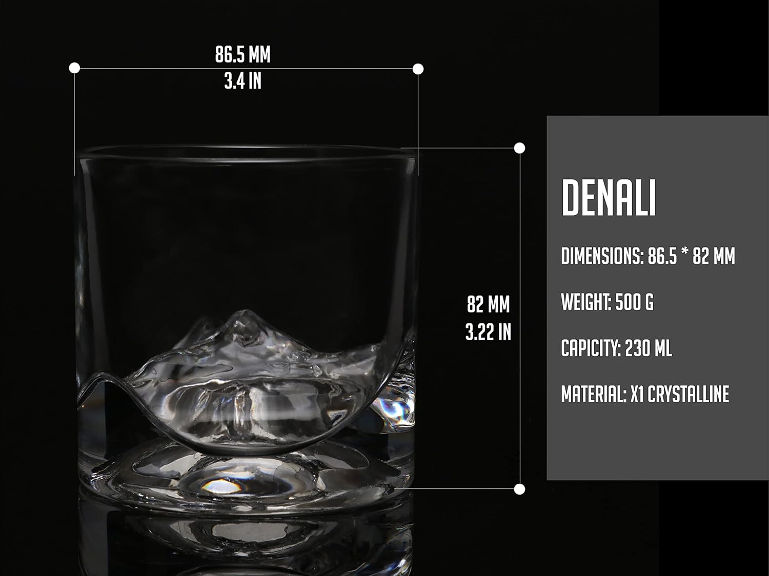- SCALE REPLICA OF DENALI MOUNTAIN: This crystal whiskey glass replicates the Denali Mountain. It naturally chills and aerates bourbon, scotch, tequila, vodka, or cocktails, elevating your drinking experience as you swirl the glass.