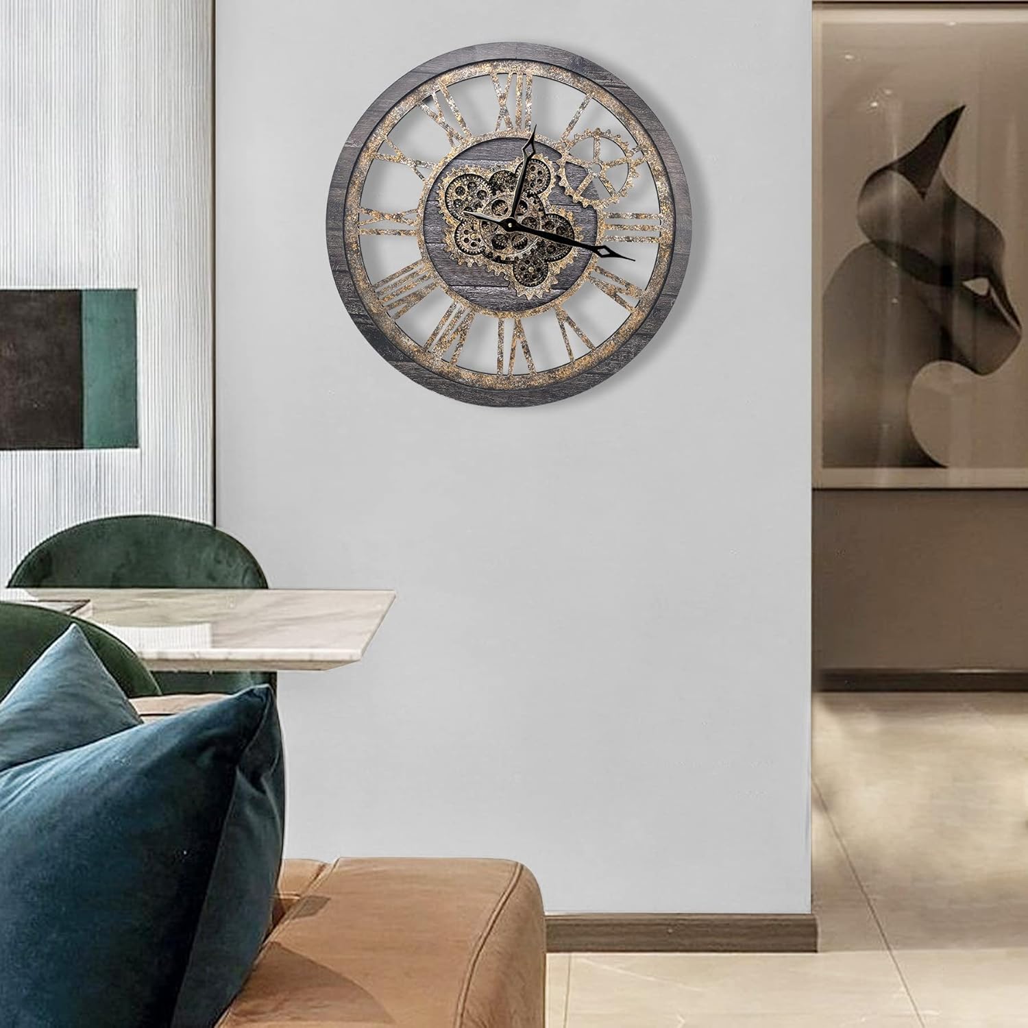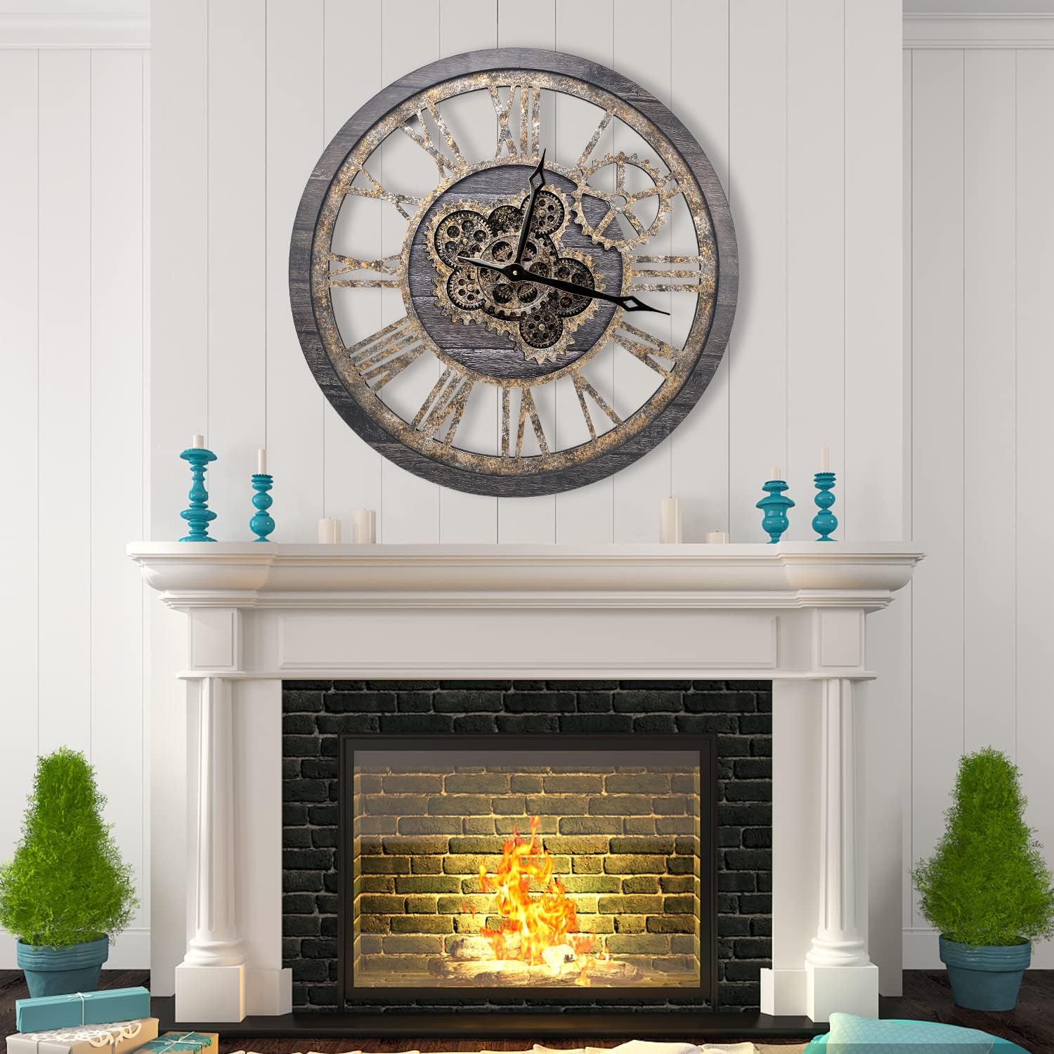 - WIDE APPLICATIONS: Oversized wall clock is not only a timepiece, but also a piece of artwork, greatly adding charm to a room, like living room, farmhouse, fireplace, bedroom or dining room, studio, gallery, loft, cafe, bar, club, etc. Rustic vintage wall clock will become an instant conversational piece for the moving gears and how cool it looks. Also awesome gifts for families or friends