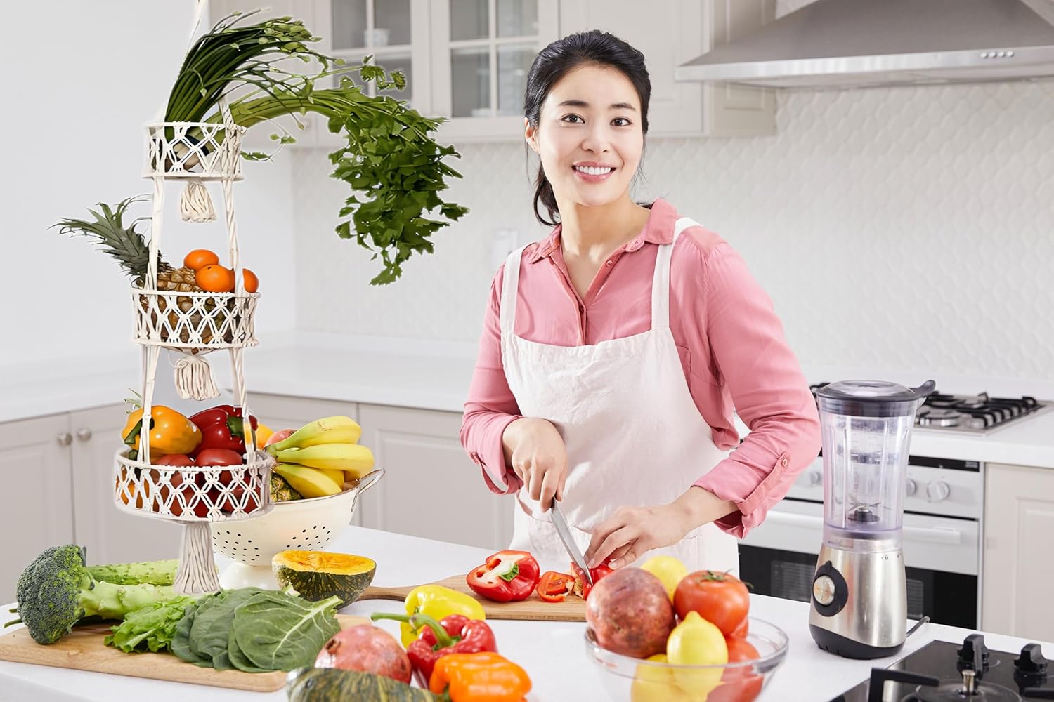 - Organize with Elegance: Our 3 Tier Hanging Basket is ideal for hanging fruit, vegetables, and other kitchen essentials. It's a chic hanging produce basket that not only keeps your kitchen organized but also adds a boho touch to your kitchen decor, creating a boho-inspired atmosphere.