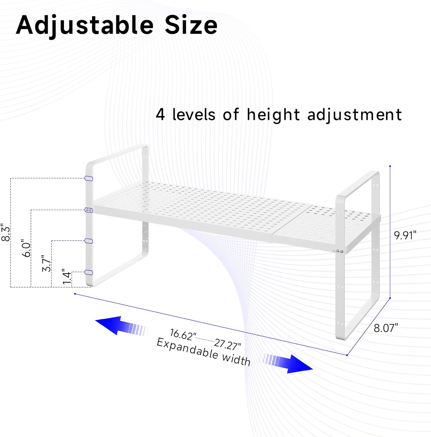 Expandable Kitchen Shelf Organizers, Kitchen Cabinet Organizer Stand Rack Organization for Countertop Cupborad Pantry, White 1 Pack