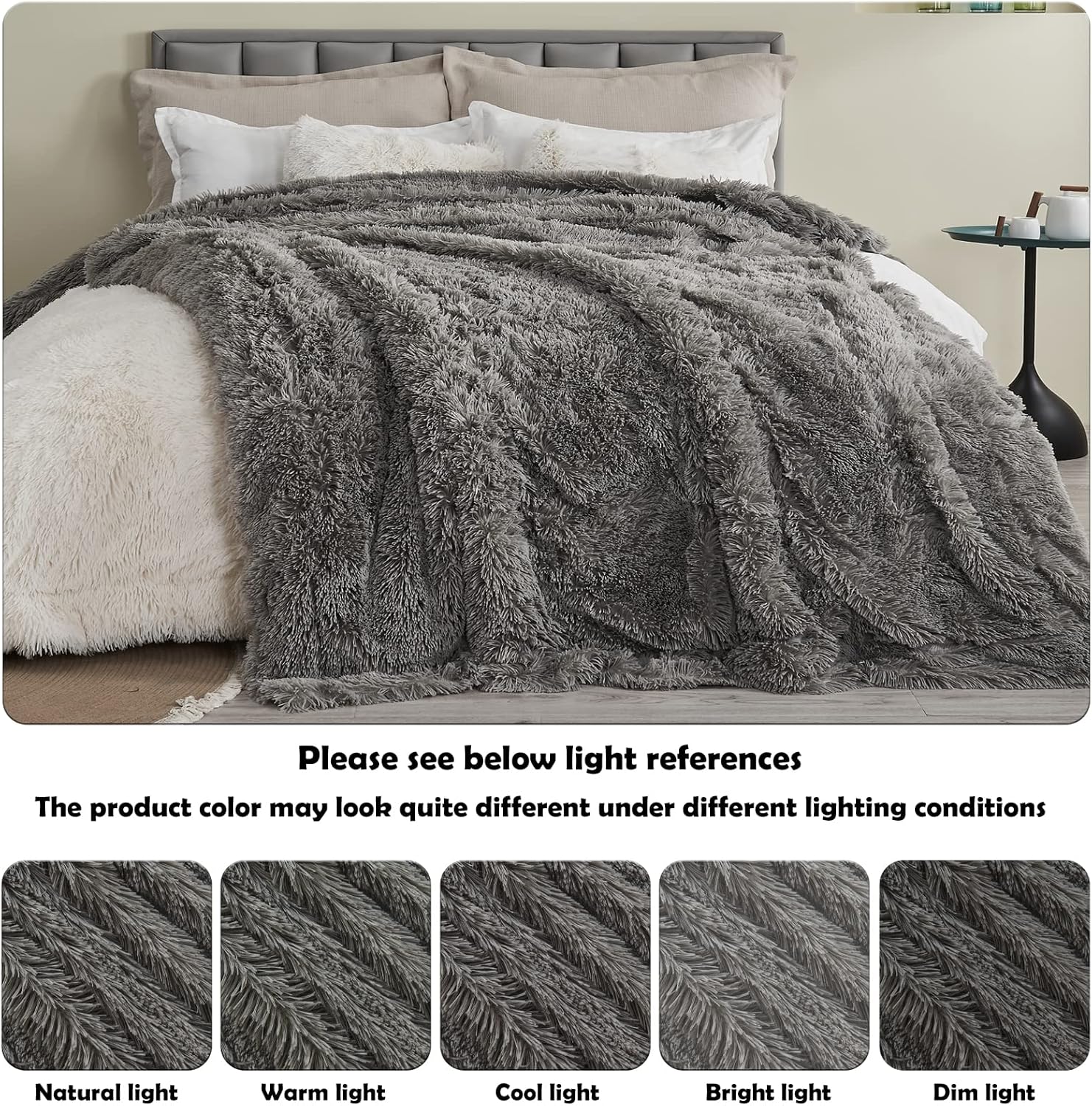 GONAAP Fuzzy Faux Fur Throw Blanket Queen Size Light Grey Super Soft Cozy Plush Fuzzy Shaggy Blanket for Couch Sofa Bed (Light Grey, Queen(90"x90"))