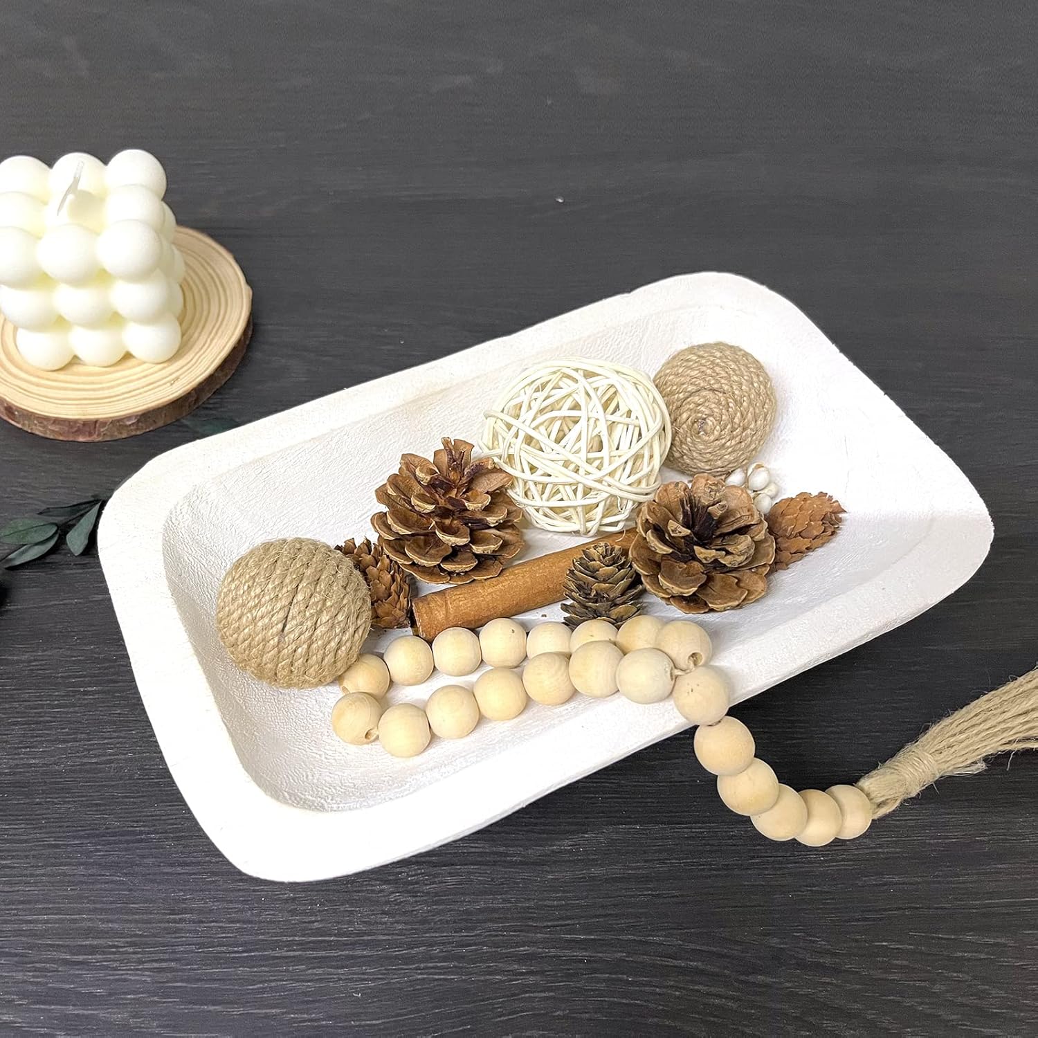 Wooden Dough Bowl Decor, Vintage Wooden Bowl Hand Carved Home Decor for Dining Table Center, Living Room, Kitchen Decor. (10inch white)