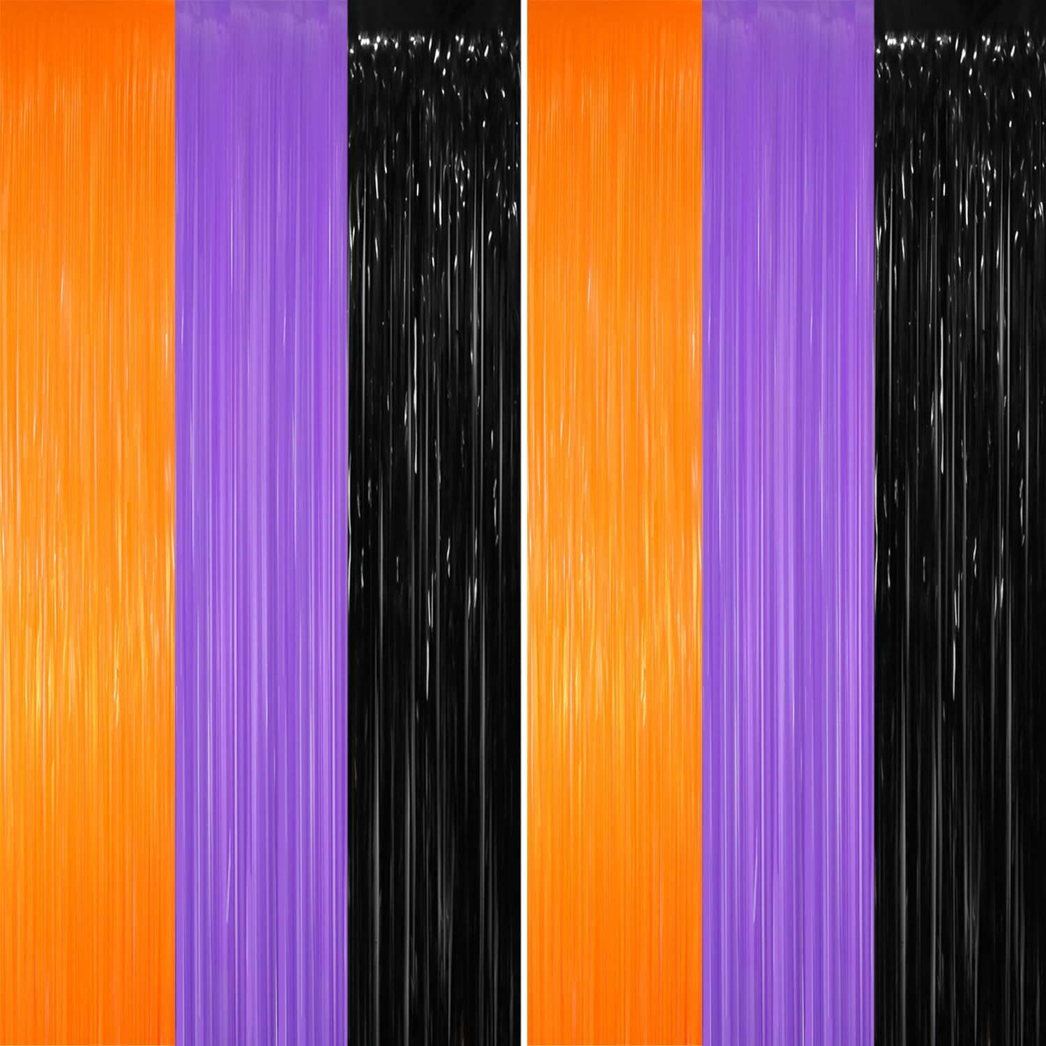- Package Includes:2 Packs Black&Orange&Purple Foil Fringe party backdrop