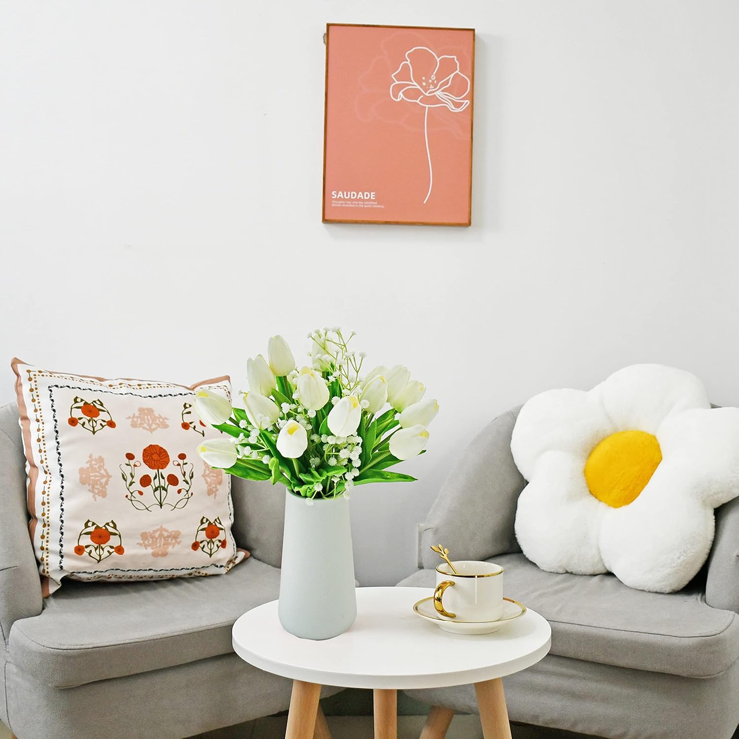 Mandy's Artificial Tulips 20 Stems White with 3pcs White Baby's Breath PU Faux Flowers for Wedding Home Decor 13.5 Inch