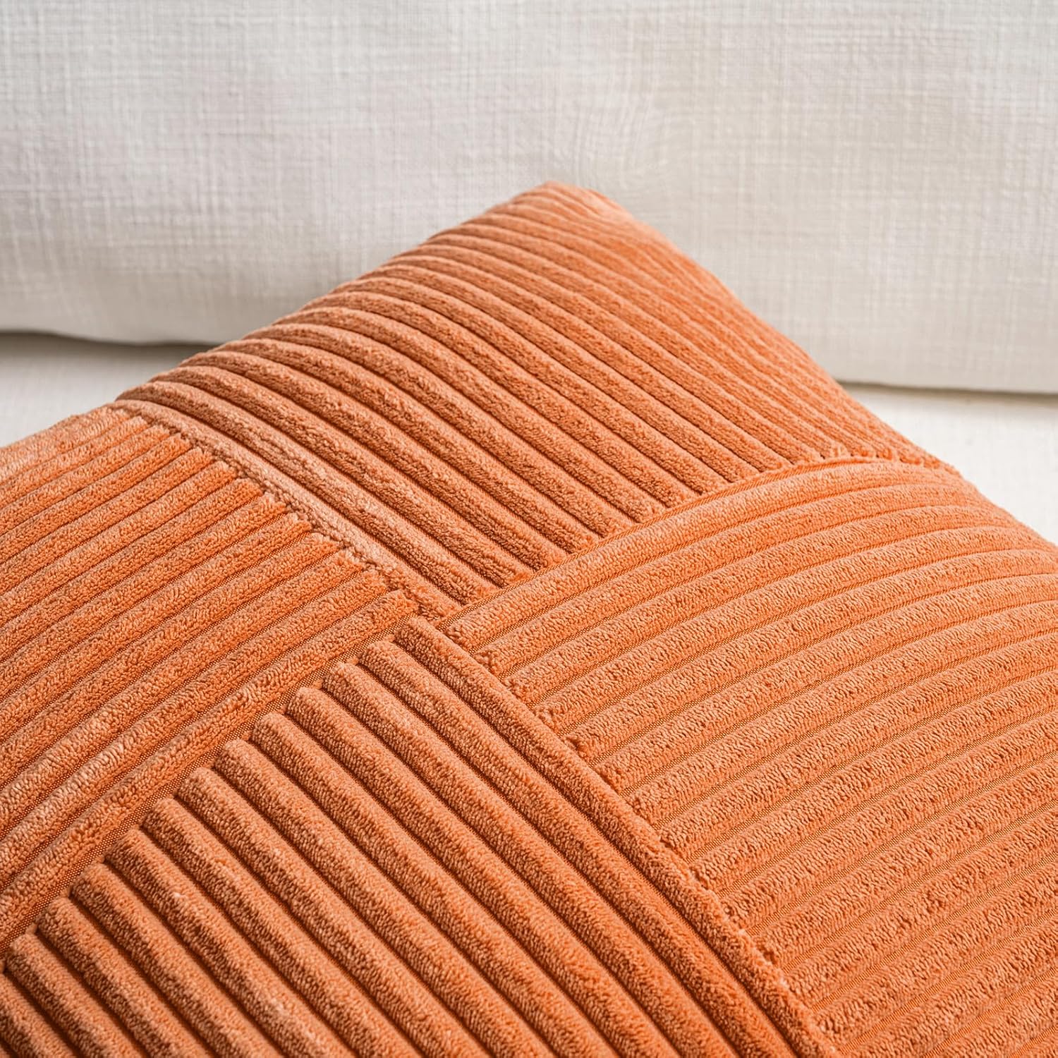 Fancy Homi 2 Packs Orange Euro Decorative Throw Pillow Covers 26x26 Inch for Living Room Couch Bed, Farmhouse Boho Home Decor, Soft Corss Corduroy Patchwork Textured Square Cushion Case 66x66 cm