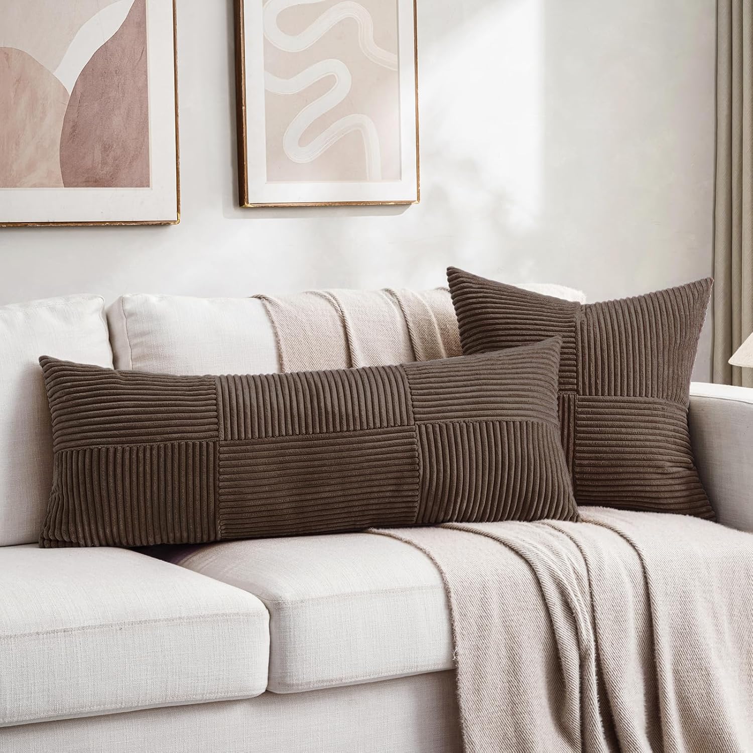 Fancy Homi 2 Packs Dark Brown Decorative Throw Pillow Covers 18x18 Inch for Living Room Couch Bed Sofa, Rustic Farmhouse Boho Home Decor, Soft Corss Corduroy Patchwork Textured Cushion Case 45x45 cm