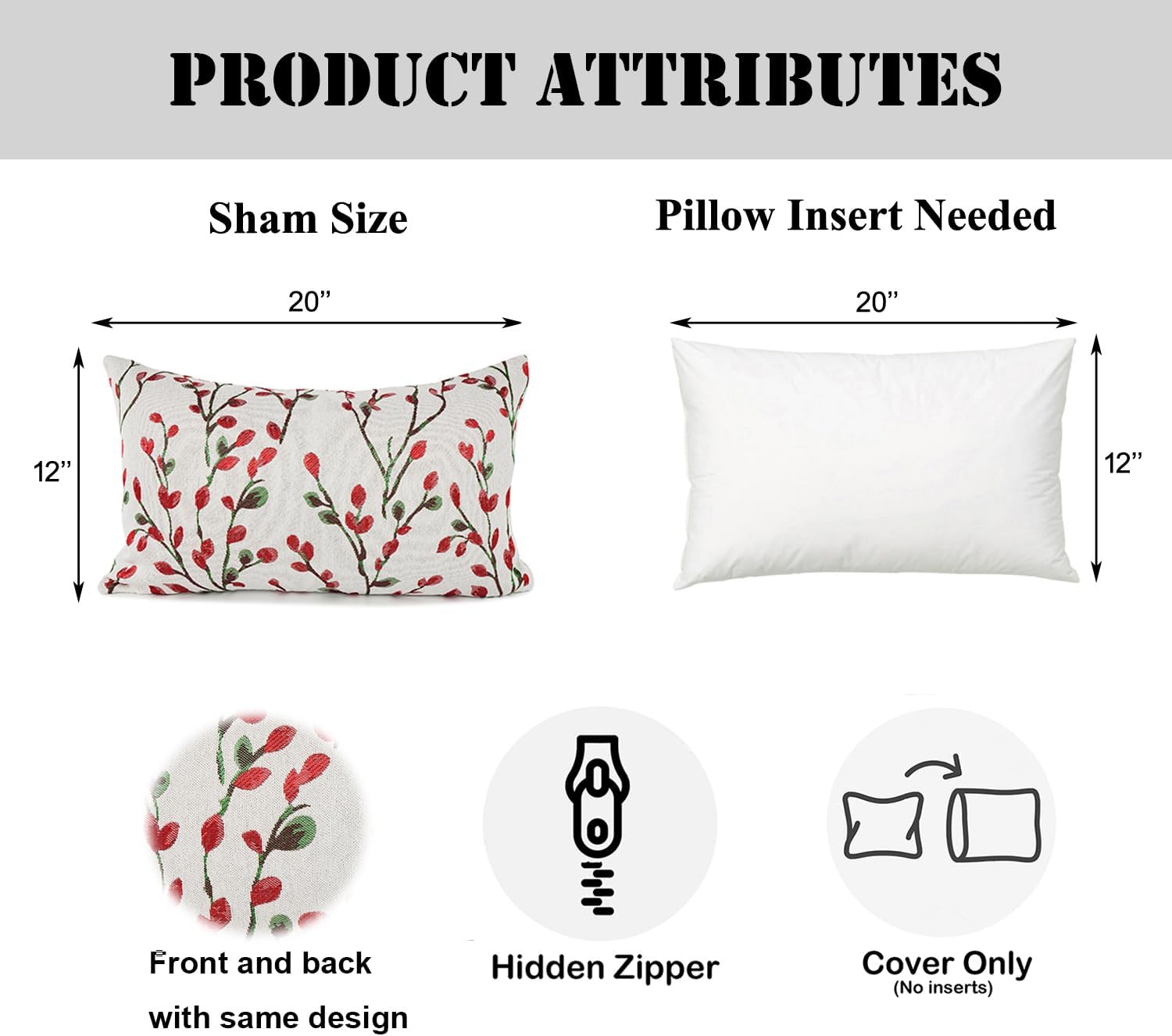 YOUR SMILE Classical Embroidery Jacquard Christmas Red Square Decorative Throw Pillow Case Cushion Cover,12x20 inch