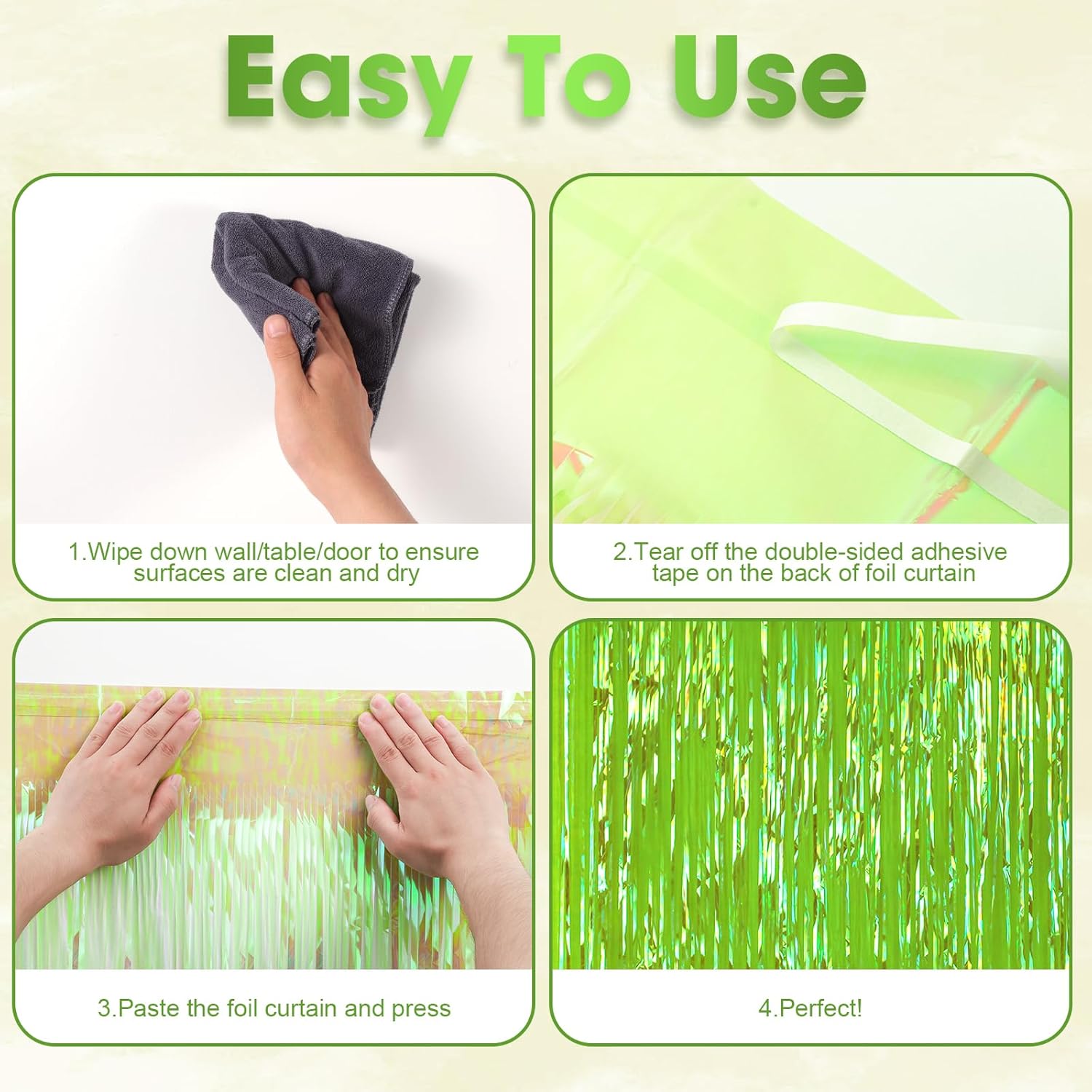 - Premium Material: This Neon Green foil curtain backdrop is made of stable tinsel, non-fading, stay shiny and reusable. Unfold it and then enjoy your glittering party