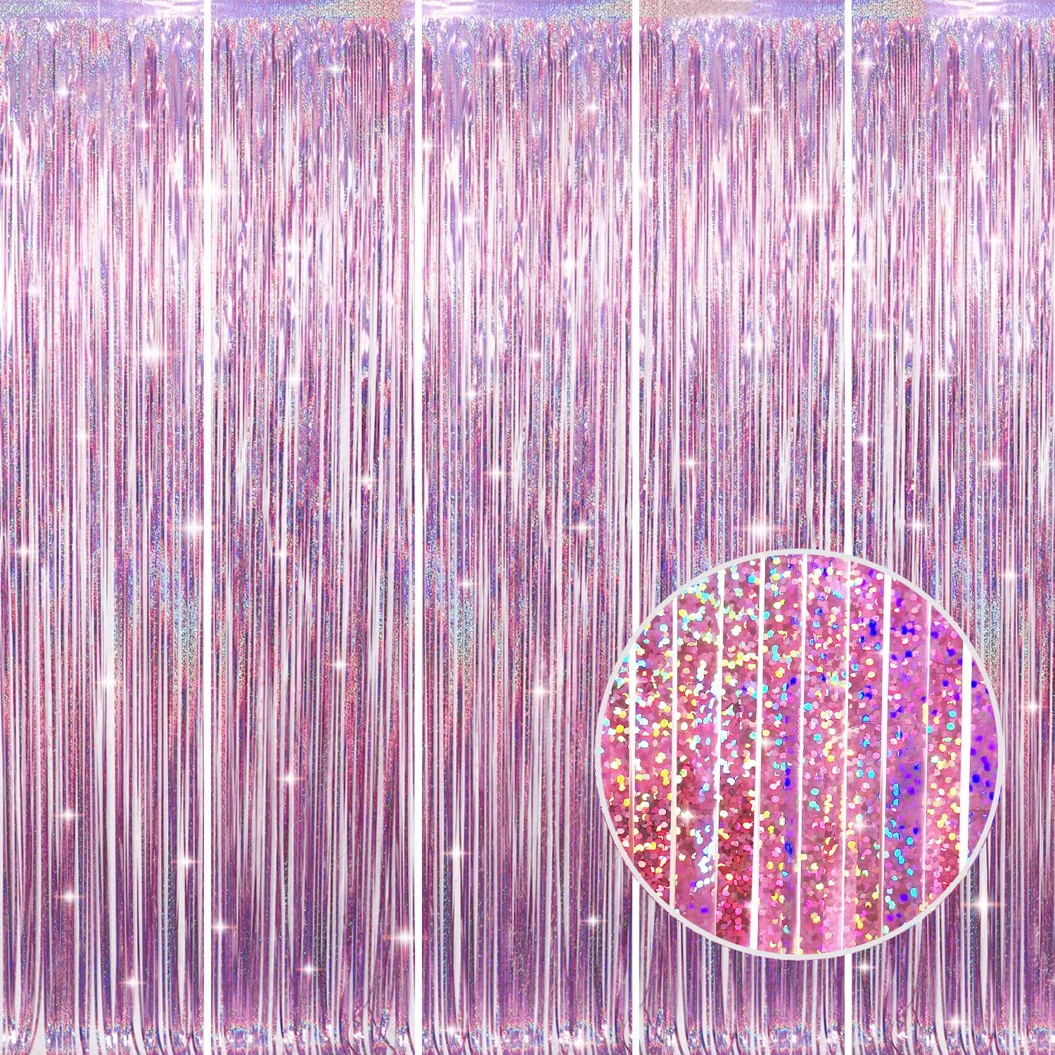 - Package Includes:5 pack laser pink foil fringe curtain,3.2 ft x 8.2 ft each,suitable for hanging on a door or coverage a wall fully