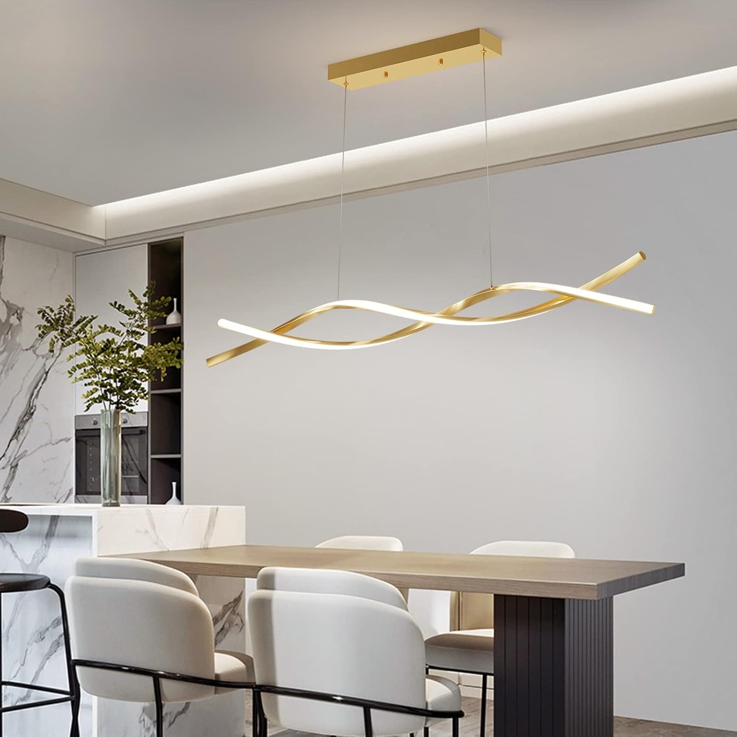 Modern Ceiling Pendant Light, with Remote Control Dimmable 3 Color Mode & Brightness Ceiling Lamp, Anti-Flicker Dining Light Fixture for Kitchen, Dining Room (Gold, 39IN)