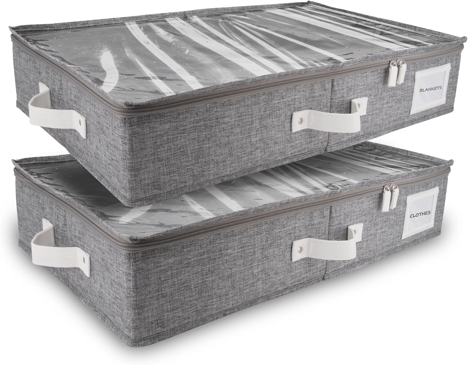 - ๐๐๐๐ ๐๐๐ญ๐ข๐จ๐ง๐ข๐ ๐๐ฅ๐จ๐ญ๐ก ๐๐๐ญ๐๐ซ๐ข๐๐ฅ: Made from premium quality fabric, our 23.5x12.5x5" Under Bed Storage Containers With Lids are durable, sturdy, & carefully designed to hold large quantities of clothes, blankets, shoes, & various bed accessories. These under bed storage dorm drawers are designed to fit perfectly under your bed for efficient bed room organization and storage, making it an under bed organizer that will easily blend into your home's aesthetic style.