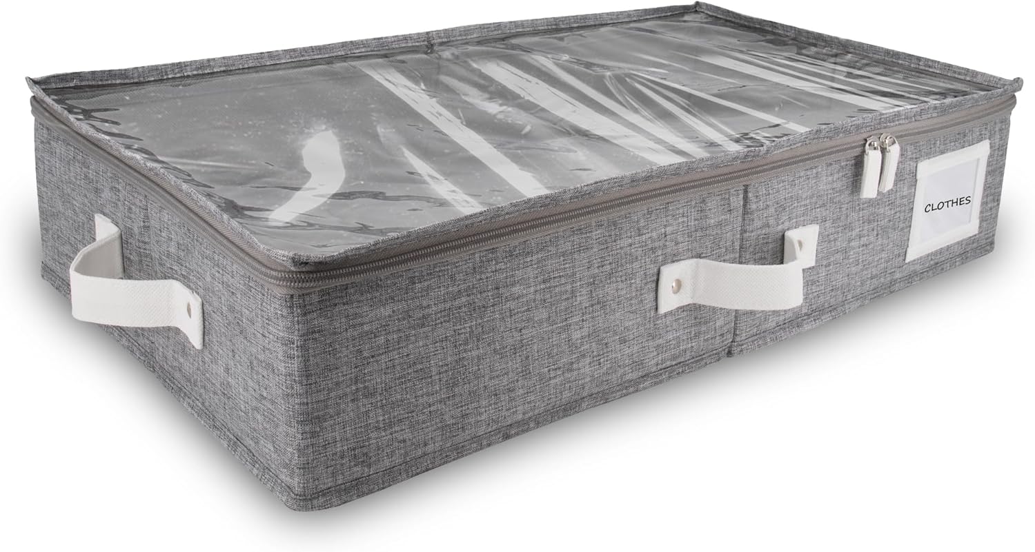 - ๐๐๐ ๐๐จ๐ฉ ๐๐จ๐ฏ๐๐ซ ๐ญ๐จ ๐๐๐๐ง๐ญ๐ข๐๐ฒ ๐๐จ๐ง๐ญ๐๐ง๐ญ๐ฌ ๐๐ฆ๐ฆ๐๐๐ข๐๐ญ๐๐ฅ๐ฒ: Homelux Theory's thin under bed storage containers not only comes with a durable clear transparent PVC lid, but it also has 2 large label pockets, allowing you to easily identify the contents such as bedroom accessories & clothes of each underbed storage containers without having to open them. This under bed storage clothes not only works best as a shoe box drawer storage, but is also for under bed under crib storage bin and underbed clothes box.