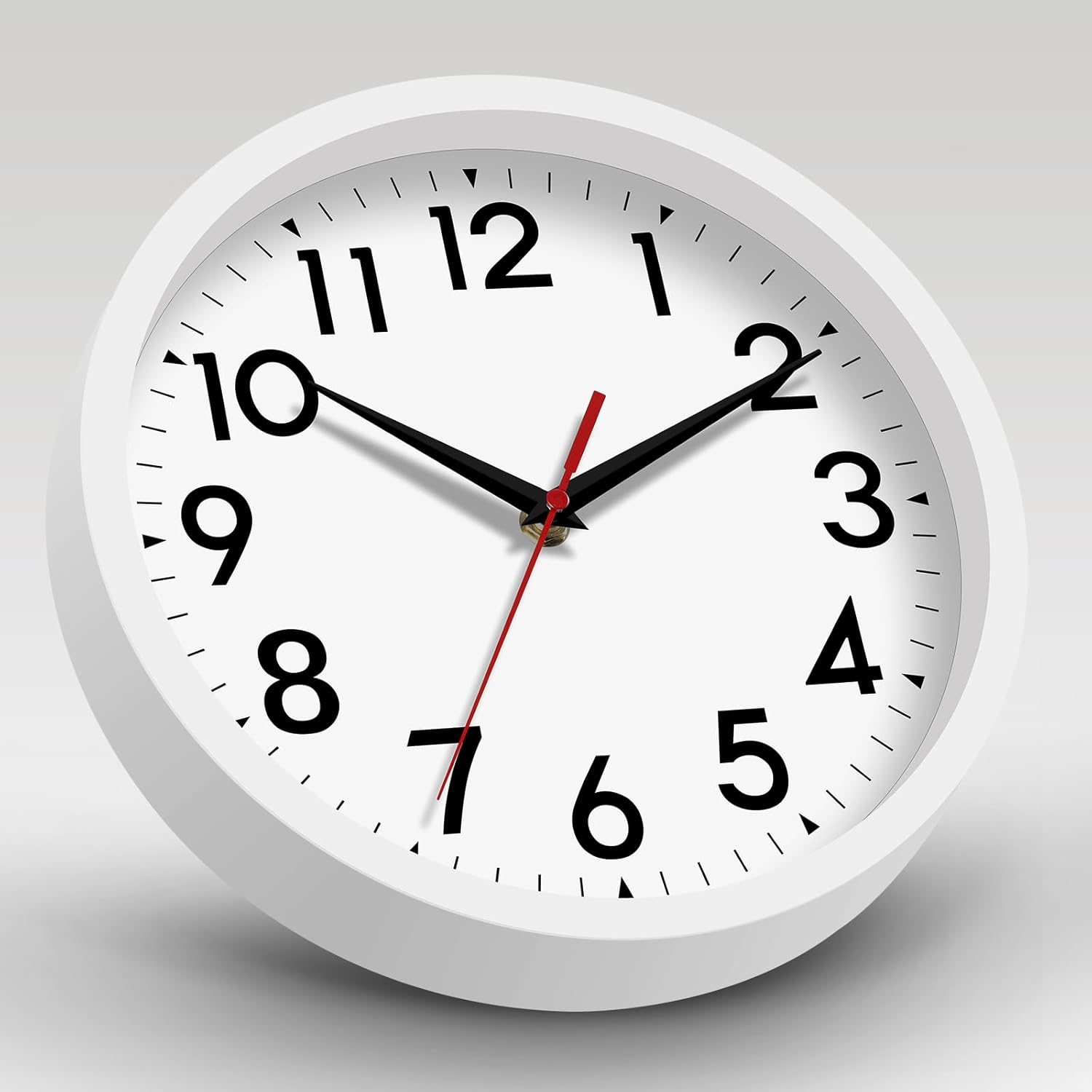 Wall Clock Modern Battery Operated 10 Inch Simpel Silent Non Ticking Analog Decorative for Kitchen Bathroom Bedroom Office Living Room School Classroom(White)