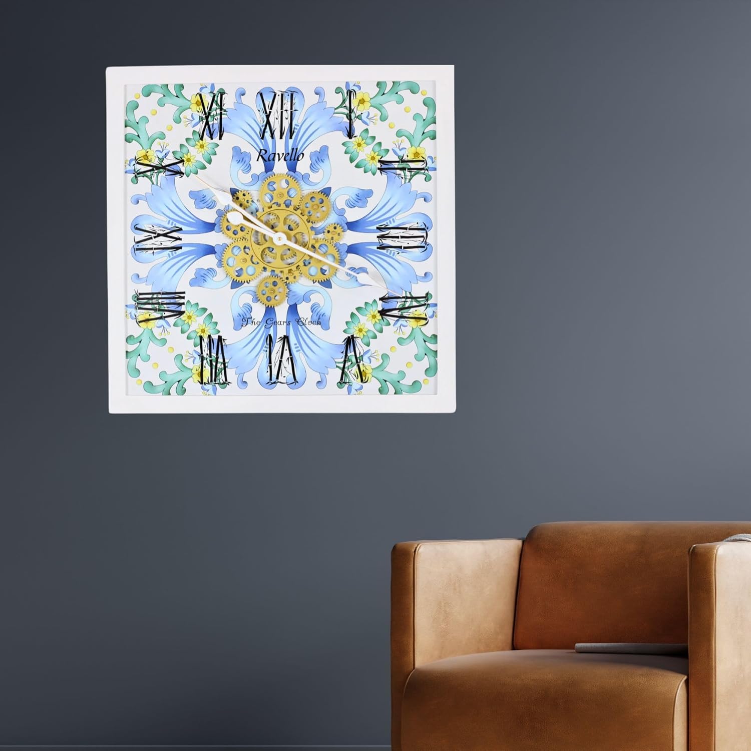- Wall Clock Italy Collection with Real Moving Gears is an Art Timepiece inspired by the Famous Amalfi coast Tiles in Italy