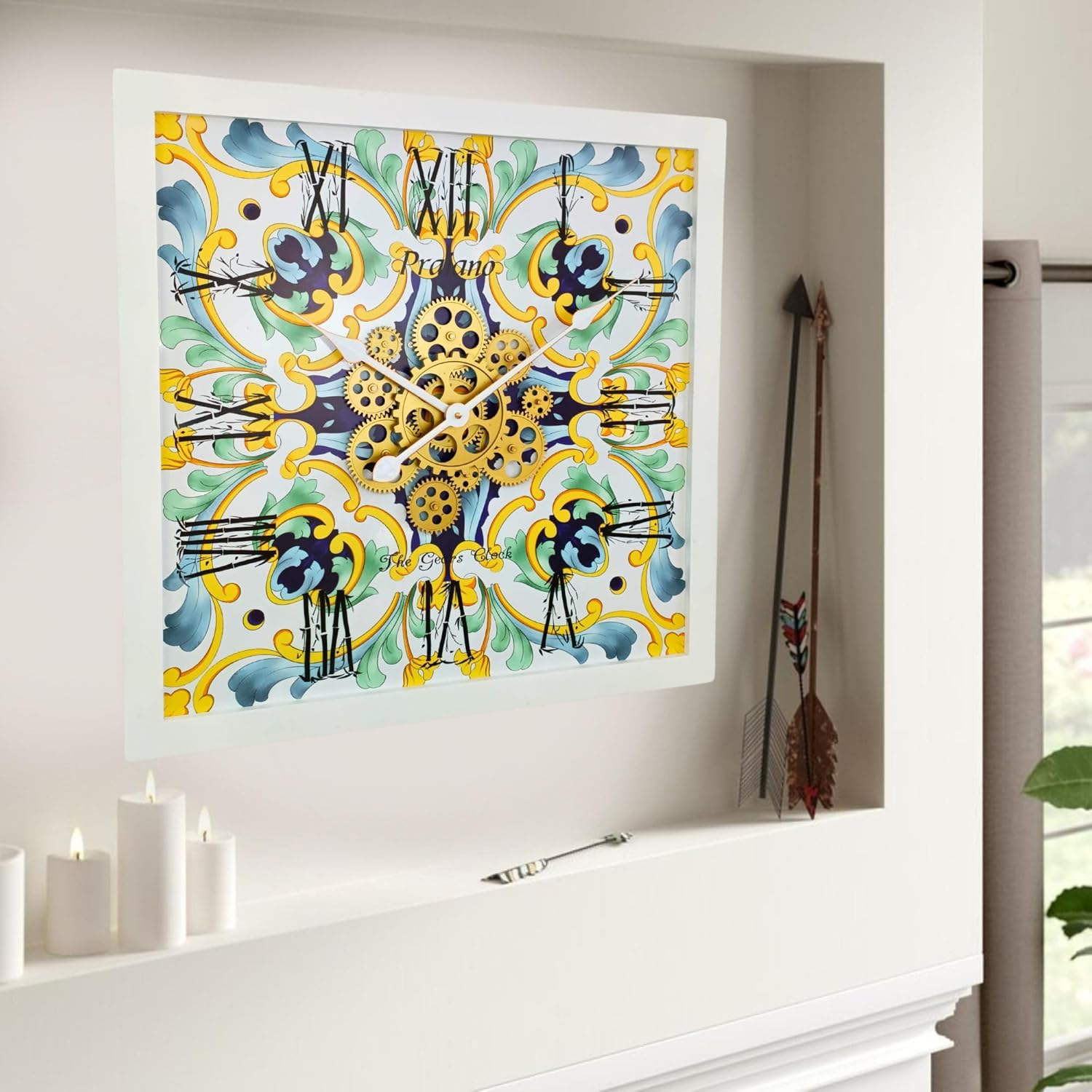- Wall Clock Italy Collection with Real Moving Gears is an Art Timepiece inspired by the Famous Amalfi coast Tiles in Italy