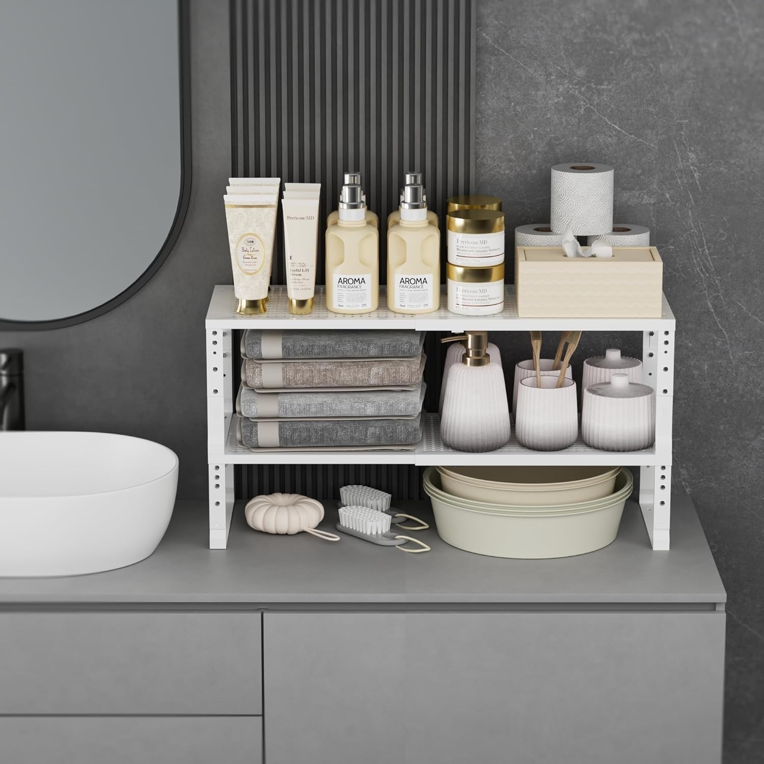 - β[Multi-purpose]This Shelf can be used in various scenes of your house including cabinets,bathroom,dressing table or under a sink. Easily organizing your cabinets for the plates, bowls, snacks, books, foods,body lotion and other else.