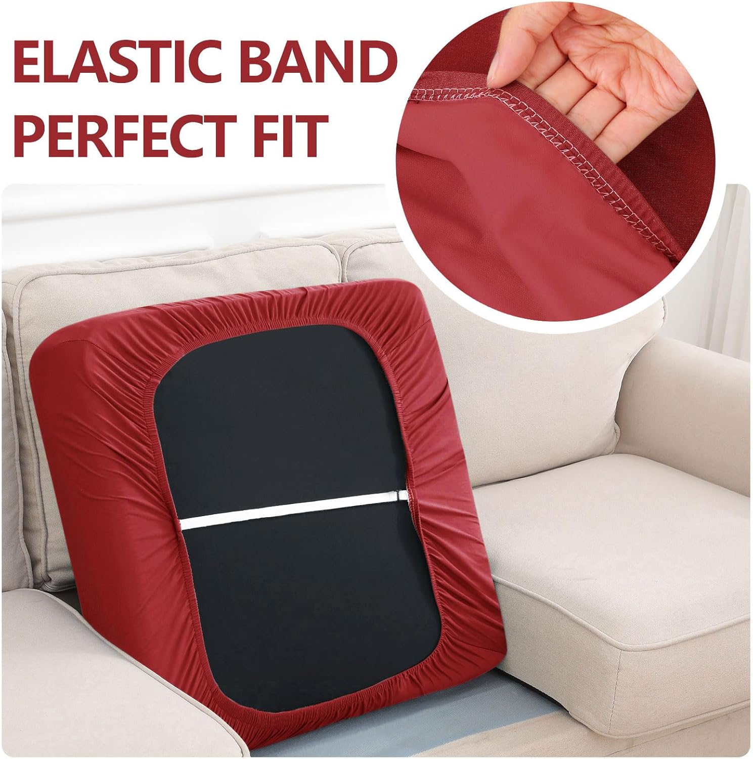 - [Stay in Place] The unique elastic band design makes the individual couch cushion covers more fit the cushion, easier to install, and more concise in appearance. Even if the child bounces on the sofa, the pet plays on the sofa, or sleeps on the sofa, the waterproof cushion covers remains on the sofa or chair.