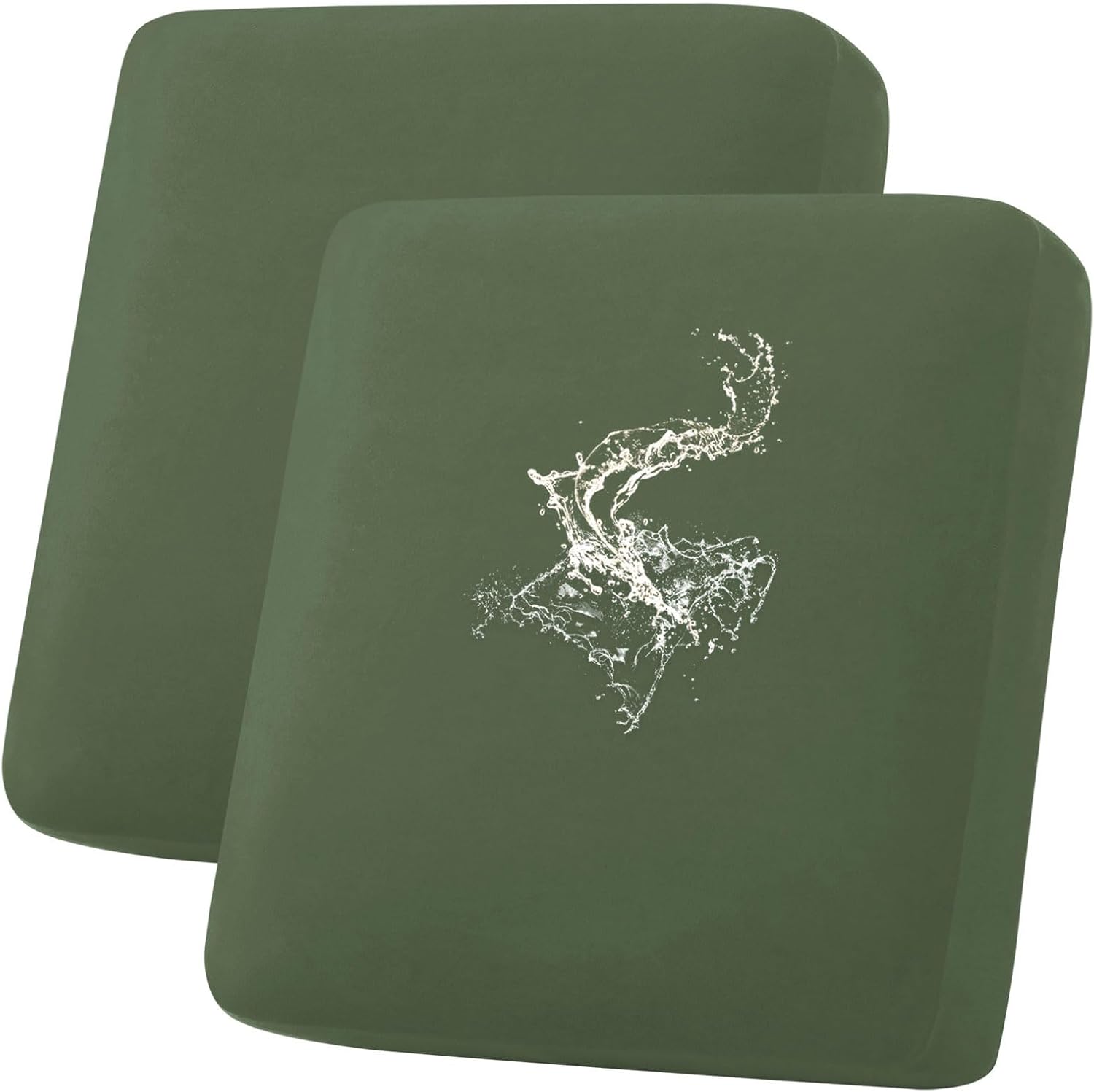 hyha Waterproof Couch Cushion Covers, Stretch Sofa Couch Seat Slipcover for Dog Washable, Non-Slip Waterproof Outdoor Cushion Covers for Patio Furniture Replacement (2 Pieces, Bronze Green)
