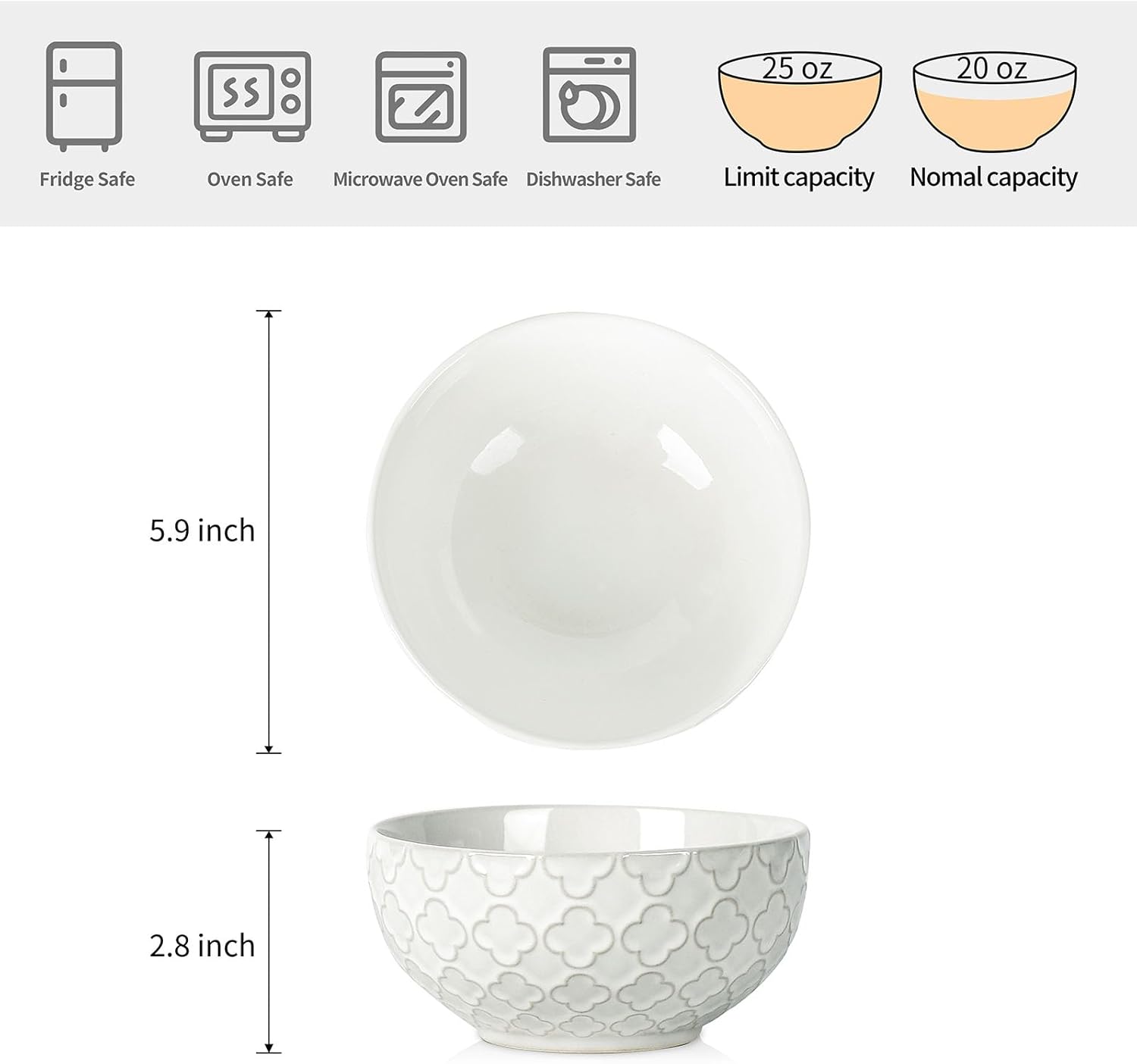 - Versatile Bowl: These ceramic bowls measure 5.9" in diameter and hold 25 oz; Perfect for soup, salad, pasta, noodles, oatmeal, ramen, and fruit; Great for family dinners, parties, restaurants, or everyday food prep and storage
