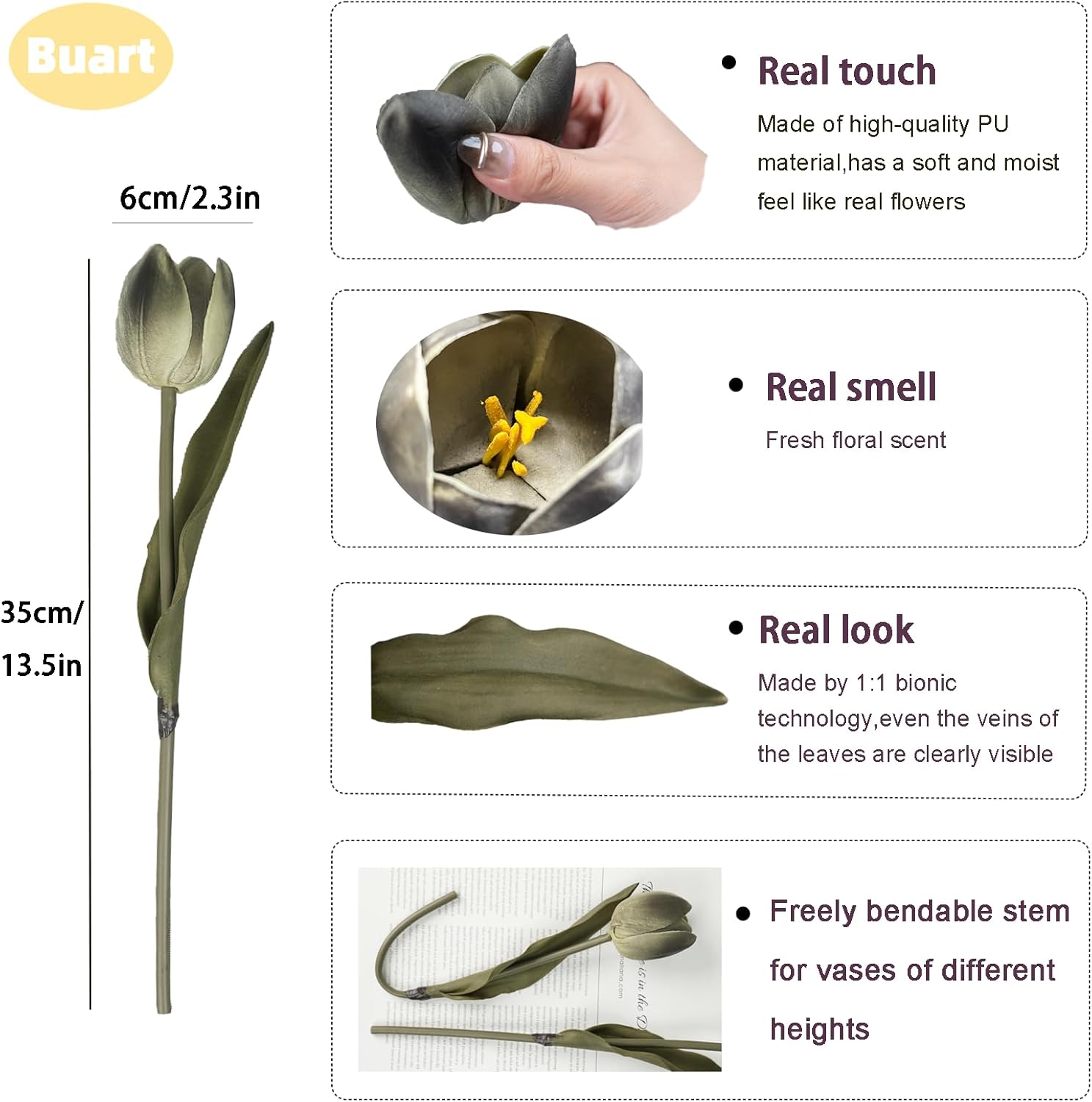 - đ·ăWide Applicationsă: These black artificial tulips are an ideal choice for home decor aesthetic,office,or commercial space decoration.You can use them on kitchen counter,dining table or anywhere else.They can also be used as decorations or centerpiece bouquets for weddings and parties,or as festival gifts for friends and family such as Death to My 20s Party,Halloween and so on.Moreover,they are great props for photography,adding visual effects to your scene.