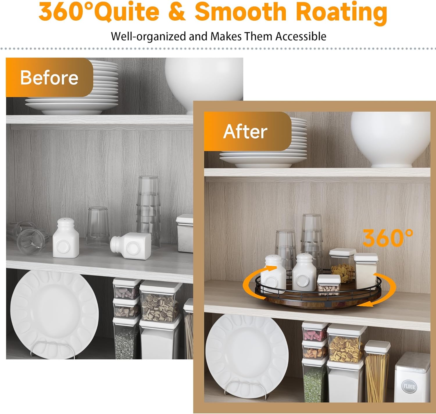 - πππππππππ πππ:This lazy susan is enough to be used nearly anywhere, perfect in the kitchen, cabinets, dining room, office, etc. on your kitchen or dining table for organizing condiments, napkins, decor, candles. Easily reach all your medicine, spices, canned goods in your pantry. Next to your stove, hold all the essentials essences, bowls, greenery, and a butter dish. Good idea for the office desk and craft room to organize. Keep your coffee stuff perfect at your coffee station.