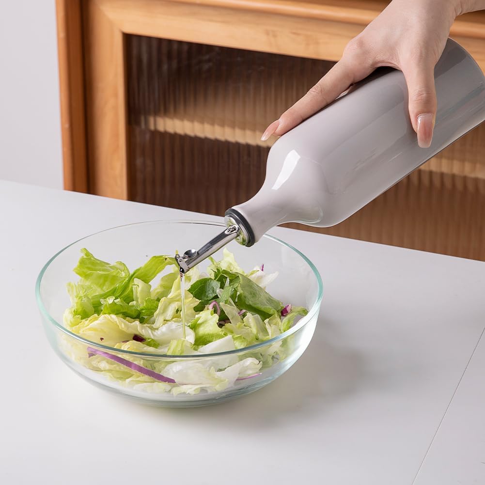 - Modern Relief Design -The bottle body is embossed with olive leaves, which looks elegant and delicate.Precision dumping, bottle body design has a unique spout, can perfectly pour out the oil and vinegar will not leak, the correct control of the use of oil.
