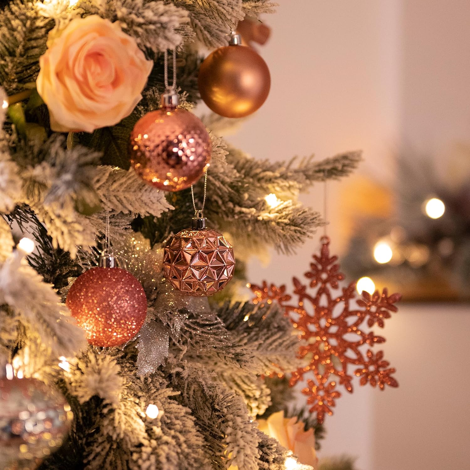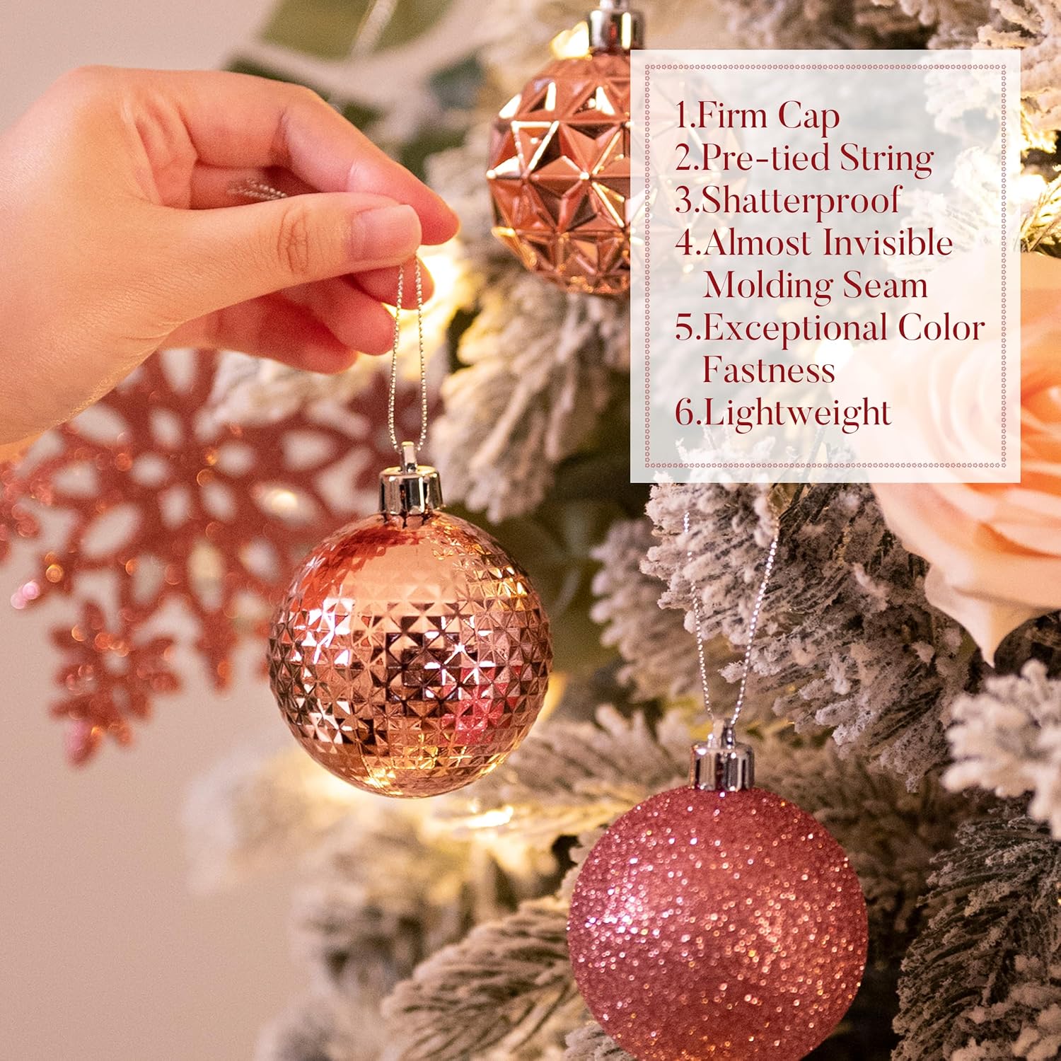 - 【Package and Size】This ornament ball set include 50pcs Christmas ornaments measuring 2.36 inches in diameter, featuring seamless connections for a polished look