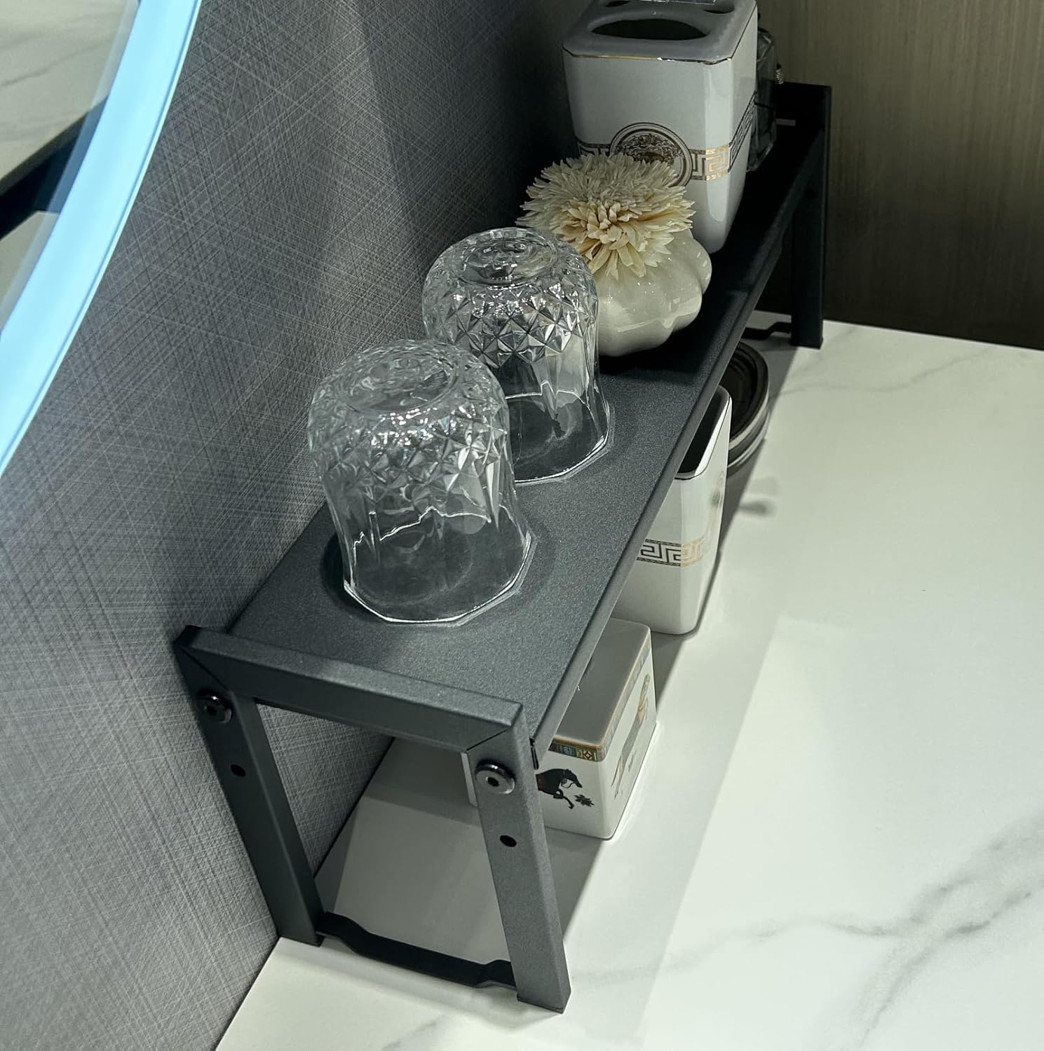 - Versatile Space Optimizer: This expandable metal shelf organizer, crafted from sturdy metal with a sleek satin finish, adjusts from 16-26 inches (L), 5.1 inches (D), 7.3 inches (H), making it an excellent space - saving solution for your kitchen counters, bathrooms, office desks, or any compact area