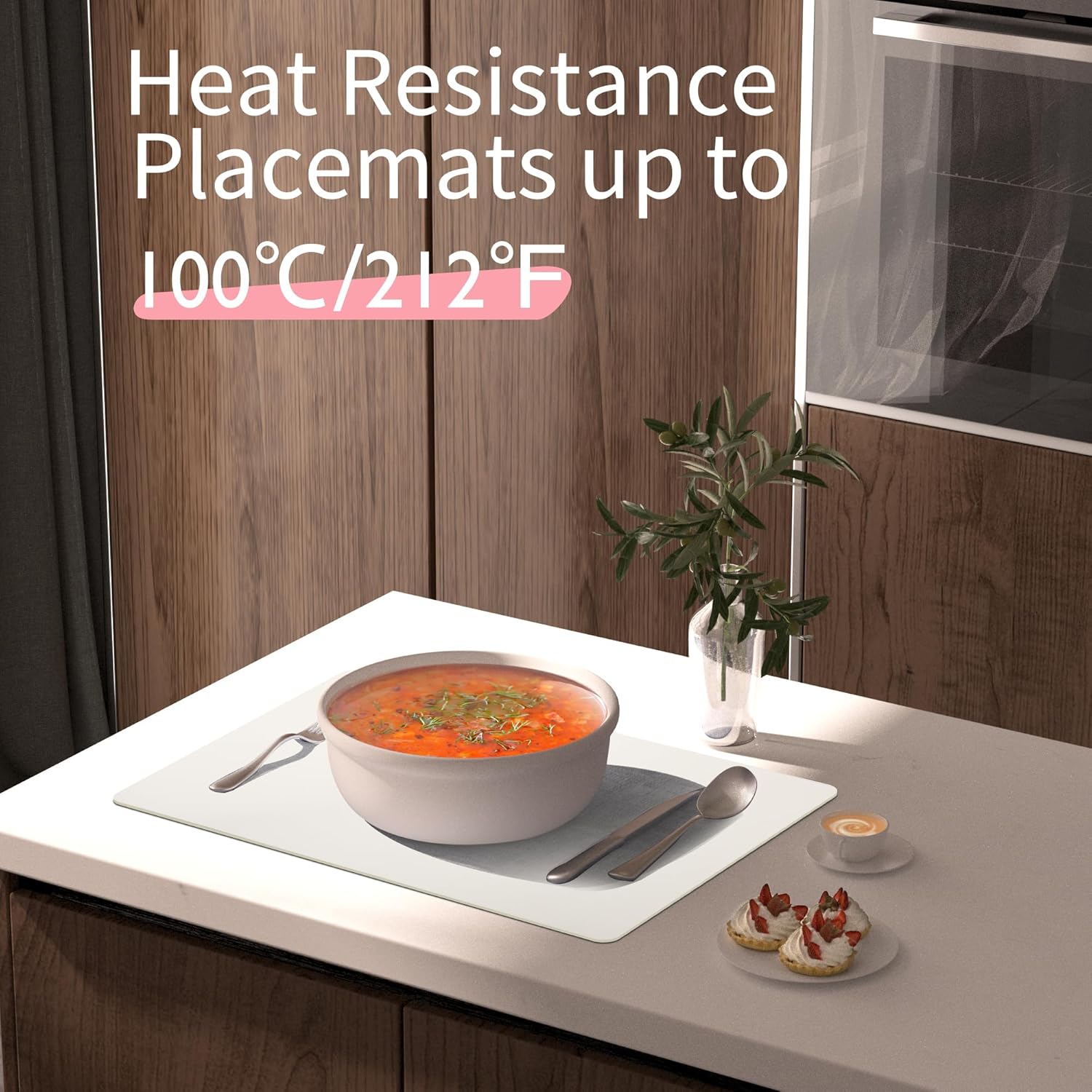 - EASY CARE: Designed for ease of use, these durable table mats withstand any spills and stains, making clean-up a breeze. Just with a simple wipe with a rag or a rinse under the tap, they'll be spotless and ready for your next meal