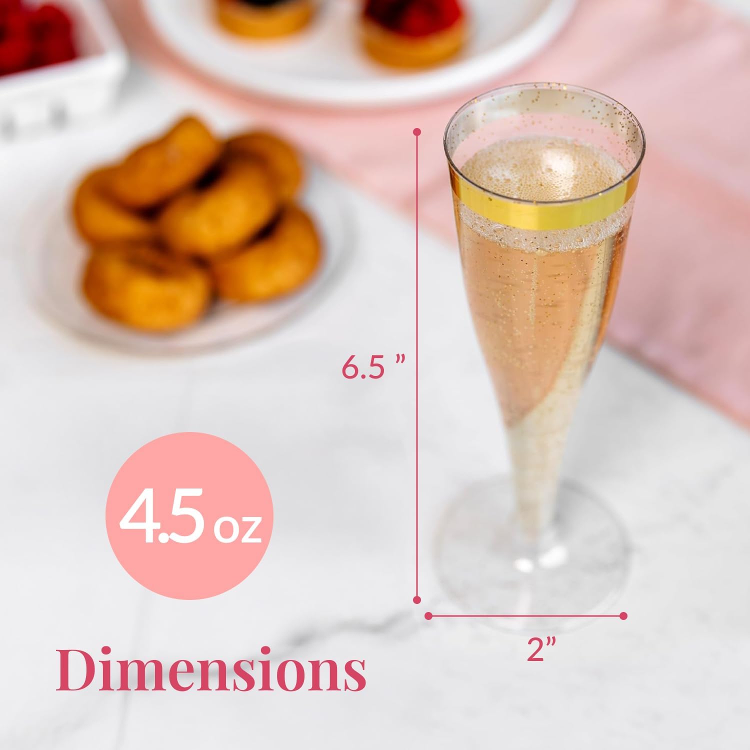 Prestee 48 Disposable Plastic Champagne Flutes with Gold Rim Glitter - Clear Toasting Glasses for Mimosa, New Year’s Eve Party, and Elegant Celebrations - Premium Quality Disposable Stemware