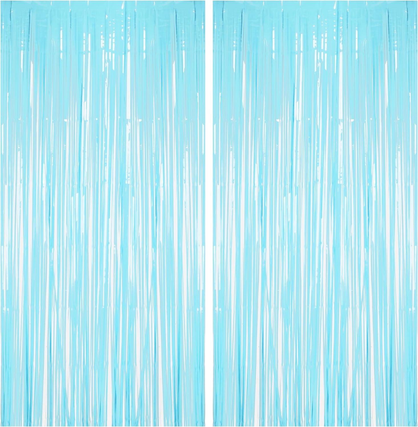 BRAVESHINE Foil Fringe Curtains Party Backdrop - Tinsel Curtain Backdrop Streamers Party Supplies for Halloween/Boo/Baby Boy/Frozen/Under Sea/Shark/Mermaid Birthdays Decorations - 2Pcs Pastel Blue