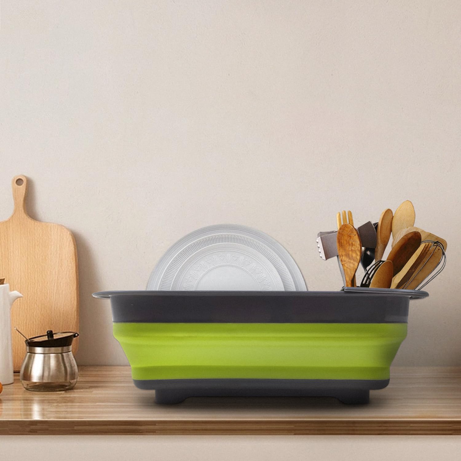 THANSTAR Collapsible Dish Drying Rack for RV Campers Portable Dinnerware Drainer Organizer for Kitchen Travel Trailer-Green