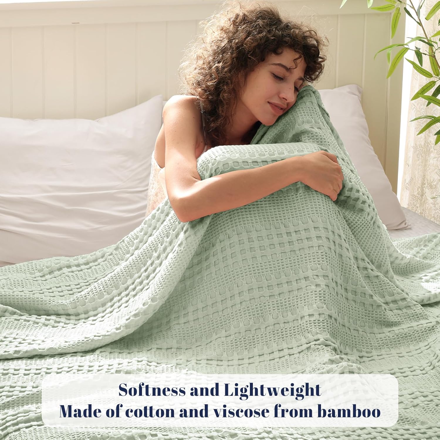 PHF Cooling Waffle Blanket Queen Size, Lightweight 60% Rayon Derived from Bamboo & 40% Cotton Breathable Blanket for Hot Sleepers, Soft and Luxury for Bed Couch and Sofa, 90"x90", Mint